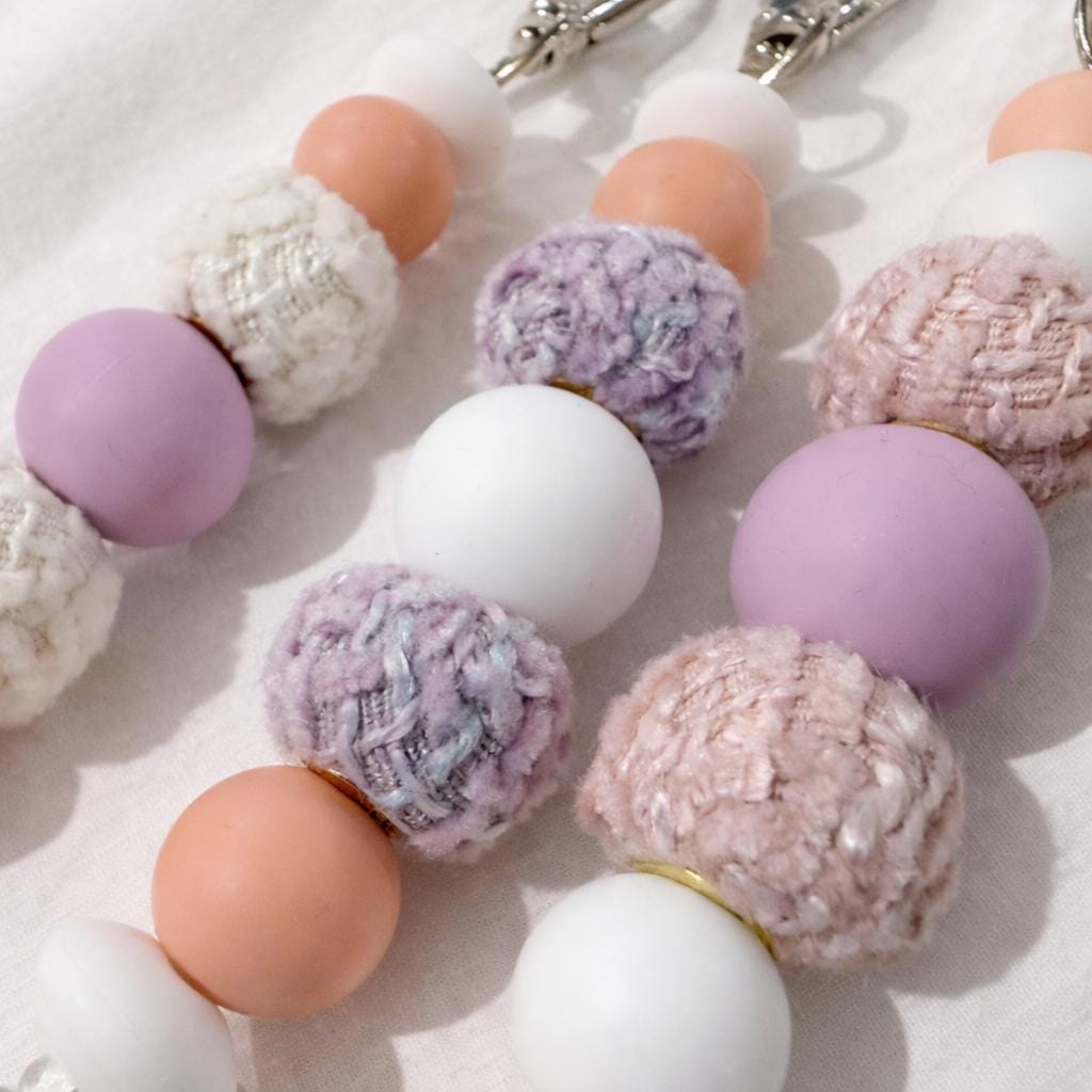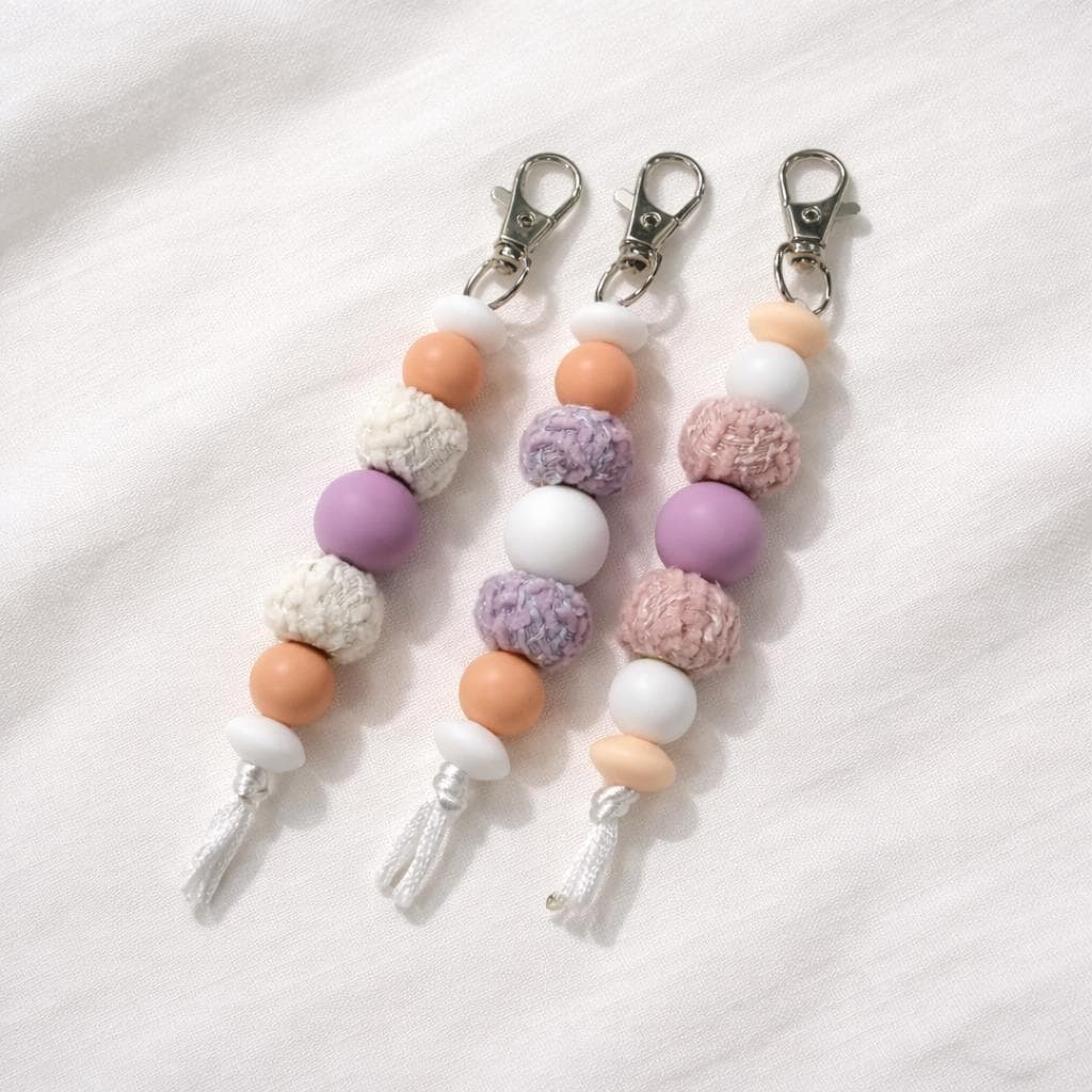 With a mix of pastel silicone beads and textured feature beads, each keychain has a sweet, calming look that suits keys, bags, or gifting to someone who loves light, delicate colours.