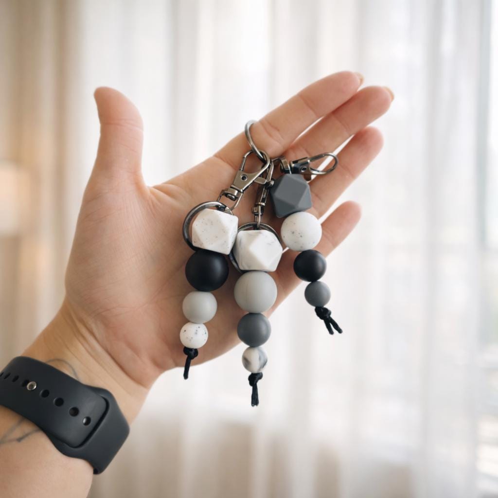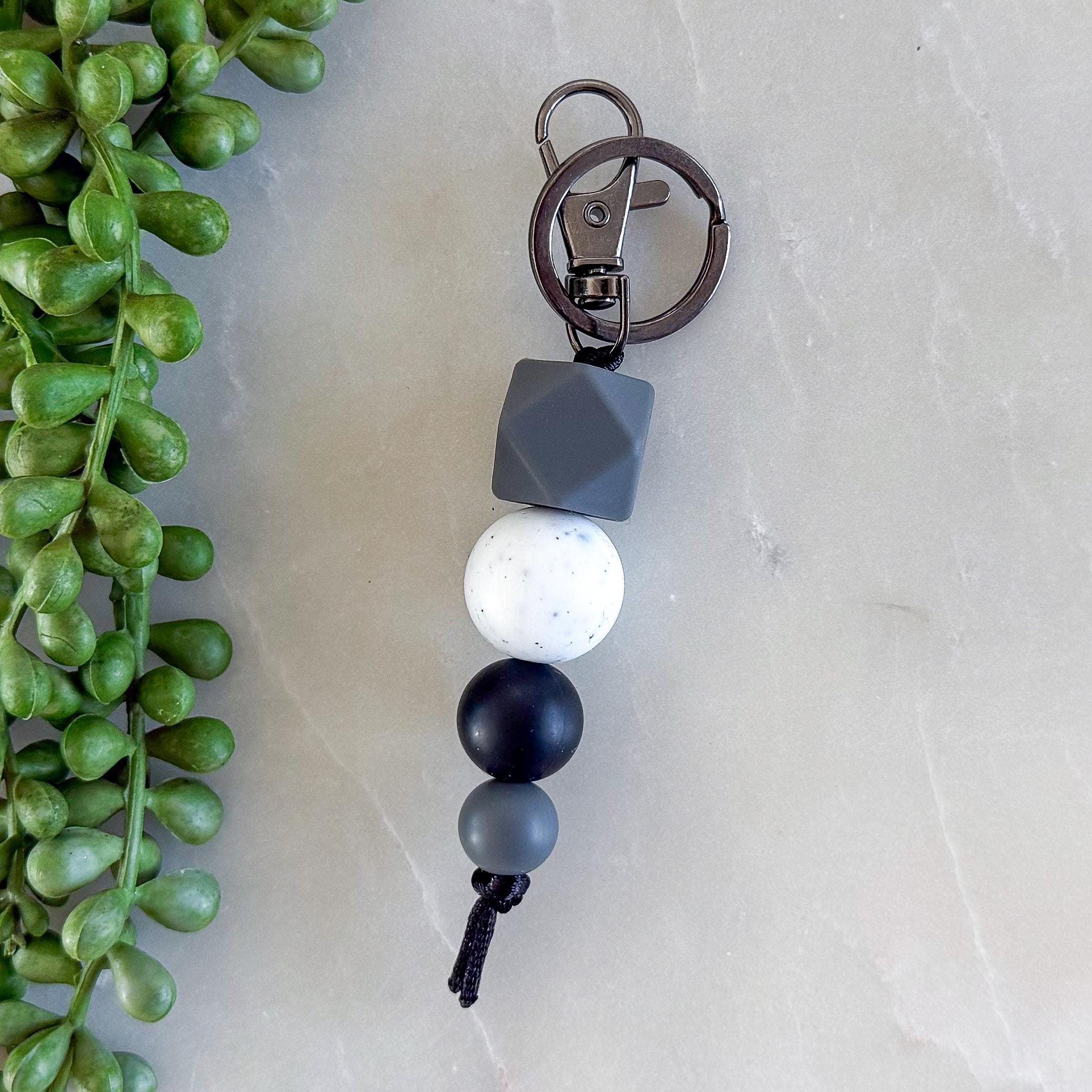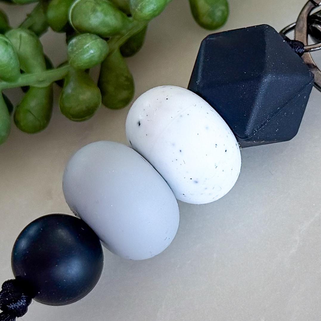 Bring a bold, modern edge to your everyday essentials with this Dark and Stormy silicone bead keyring.
