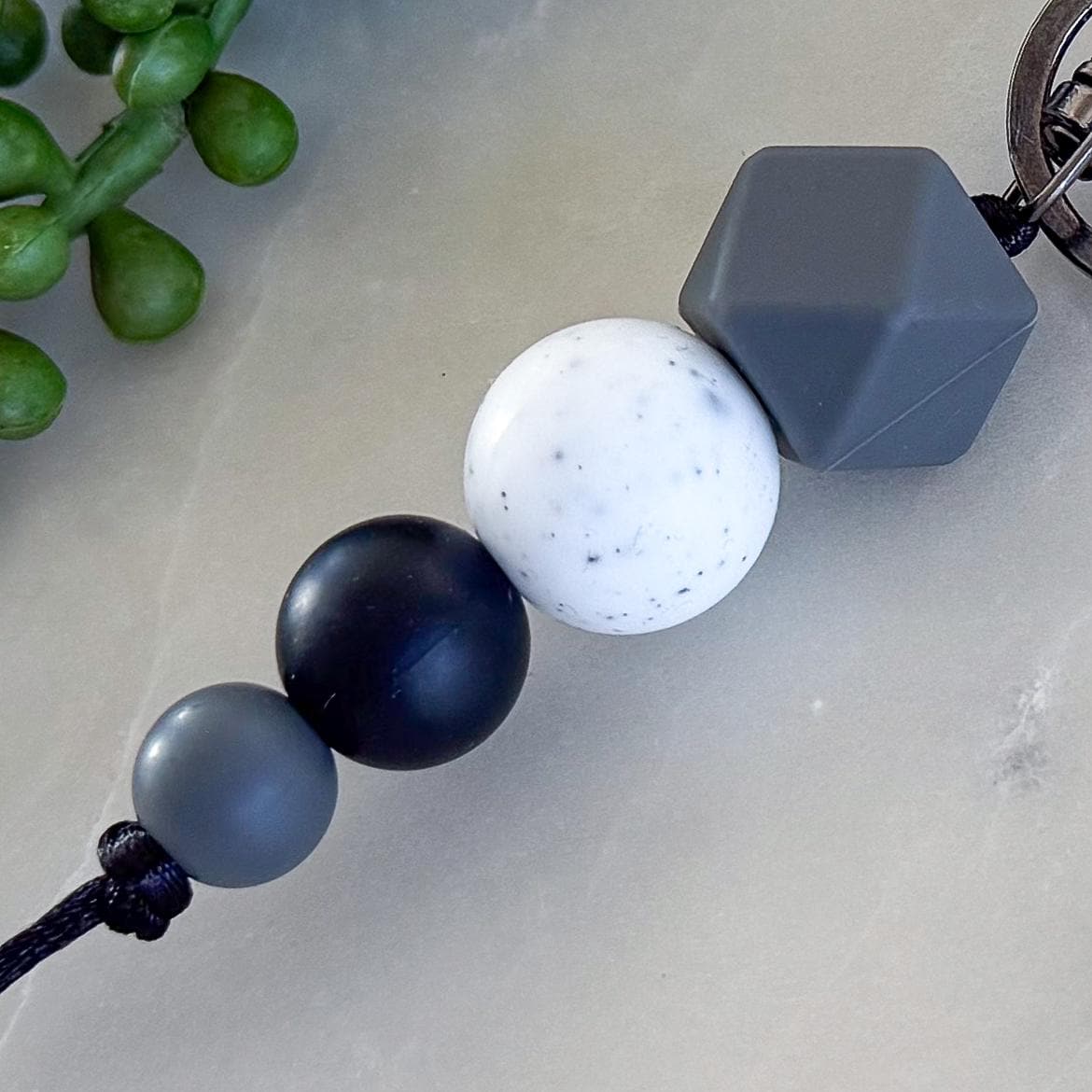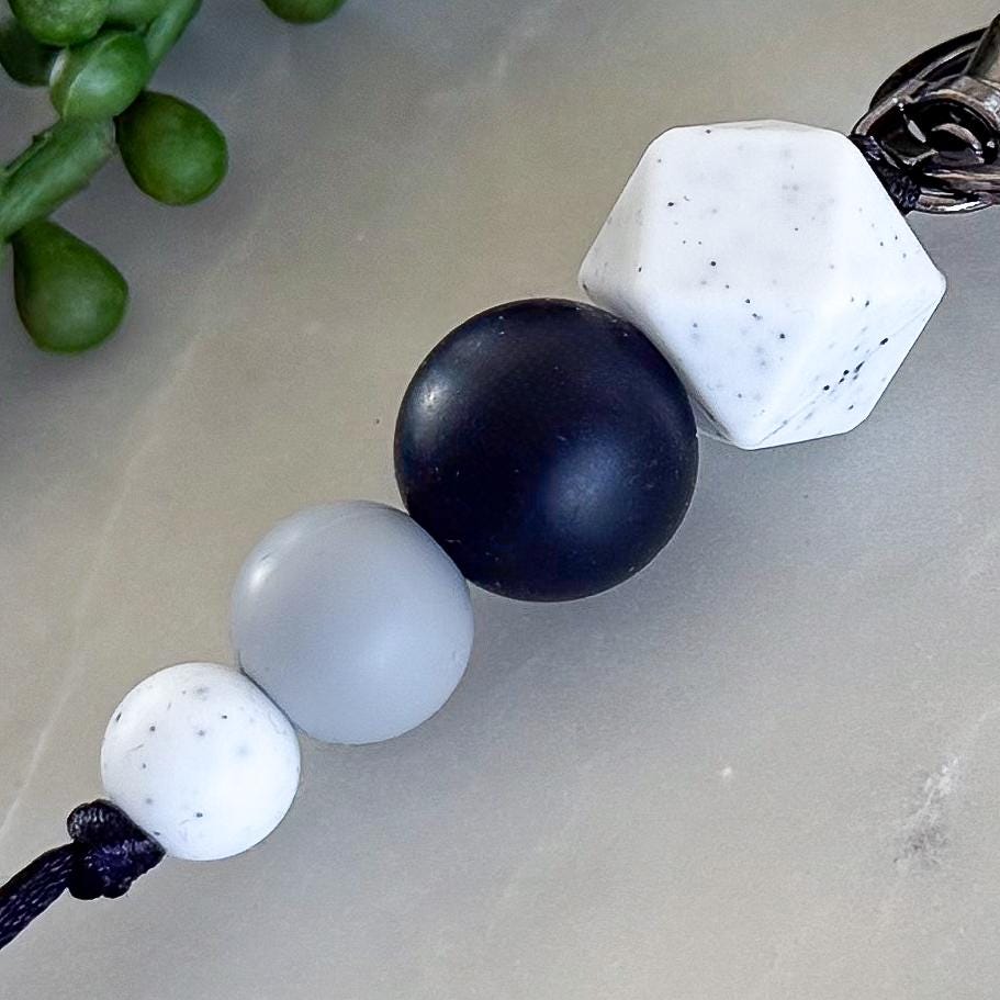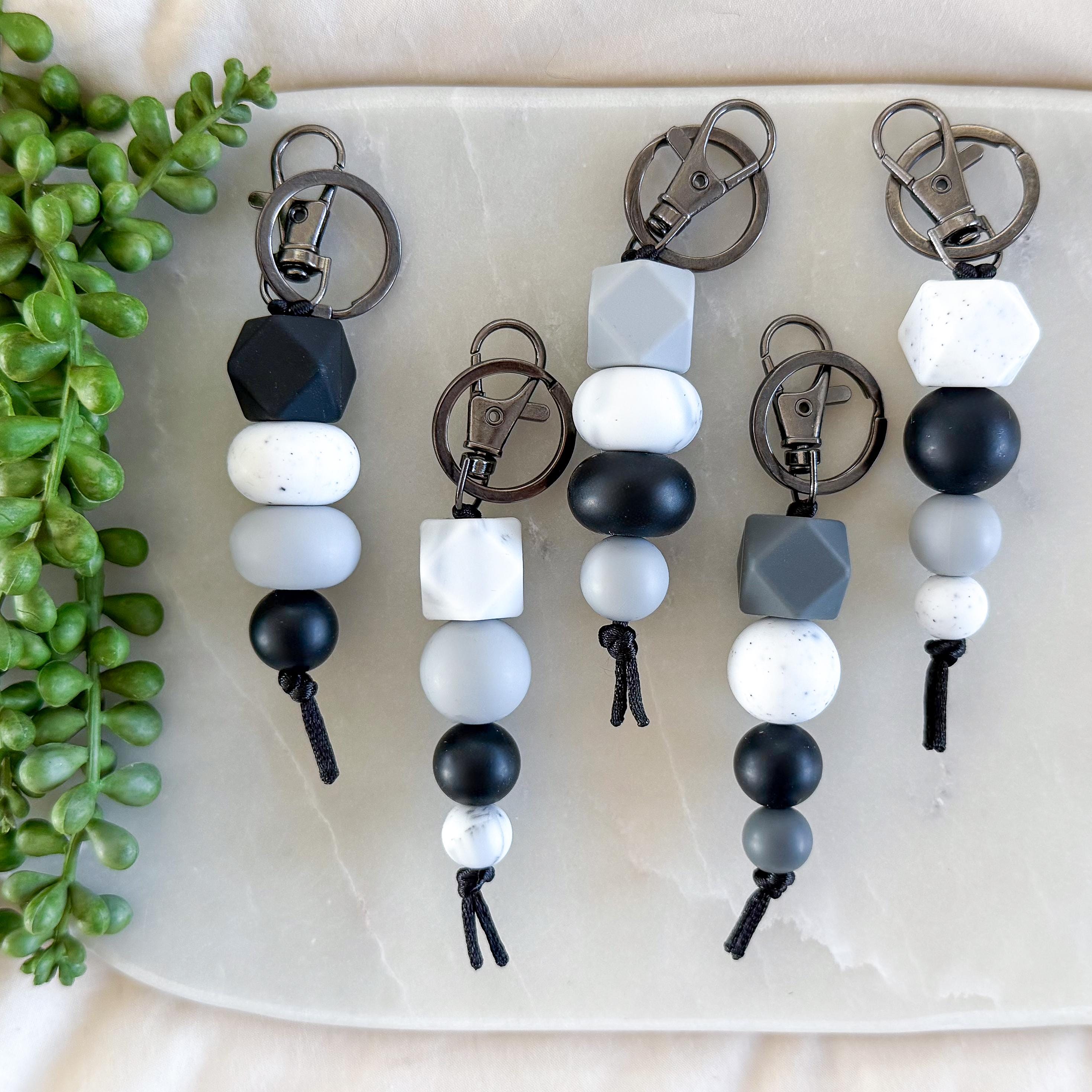 Bring a bold, modern edge to your everyday essentials with this Dark and Stormy silicone bead keyring.