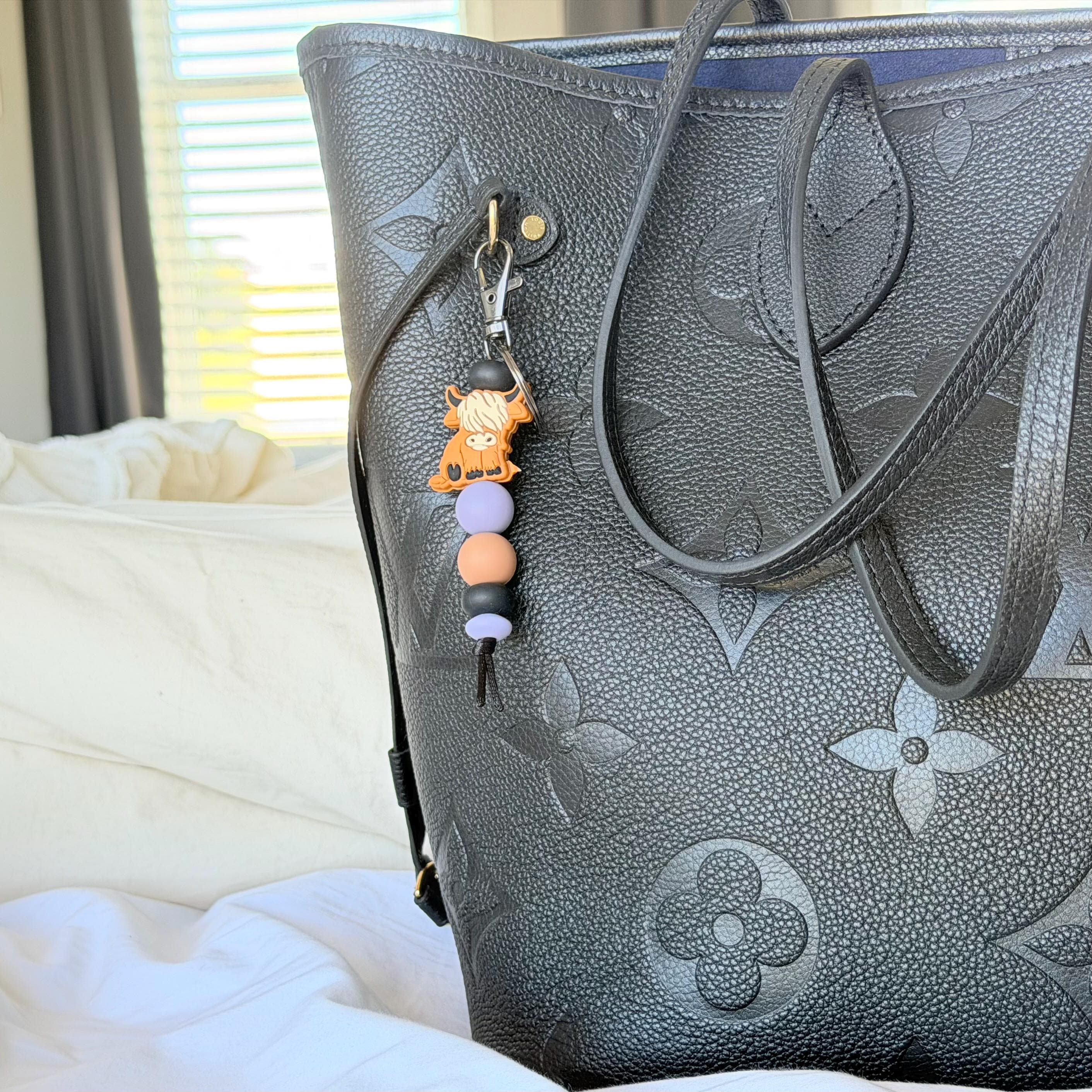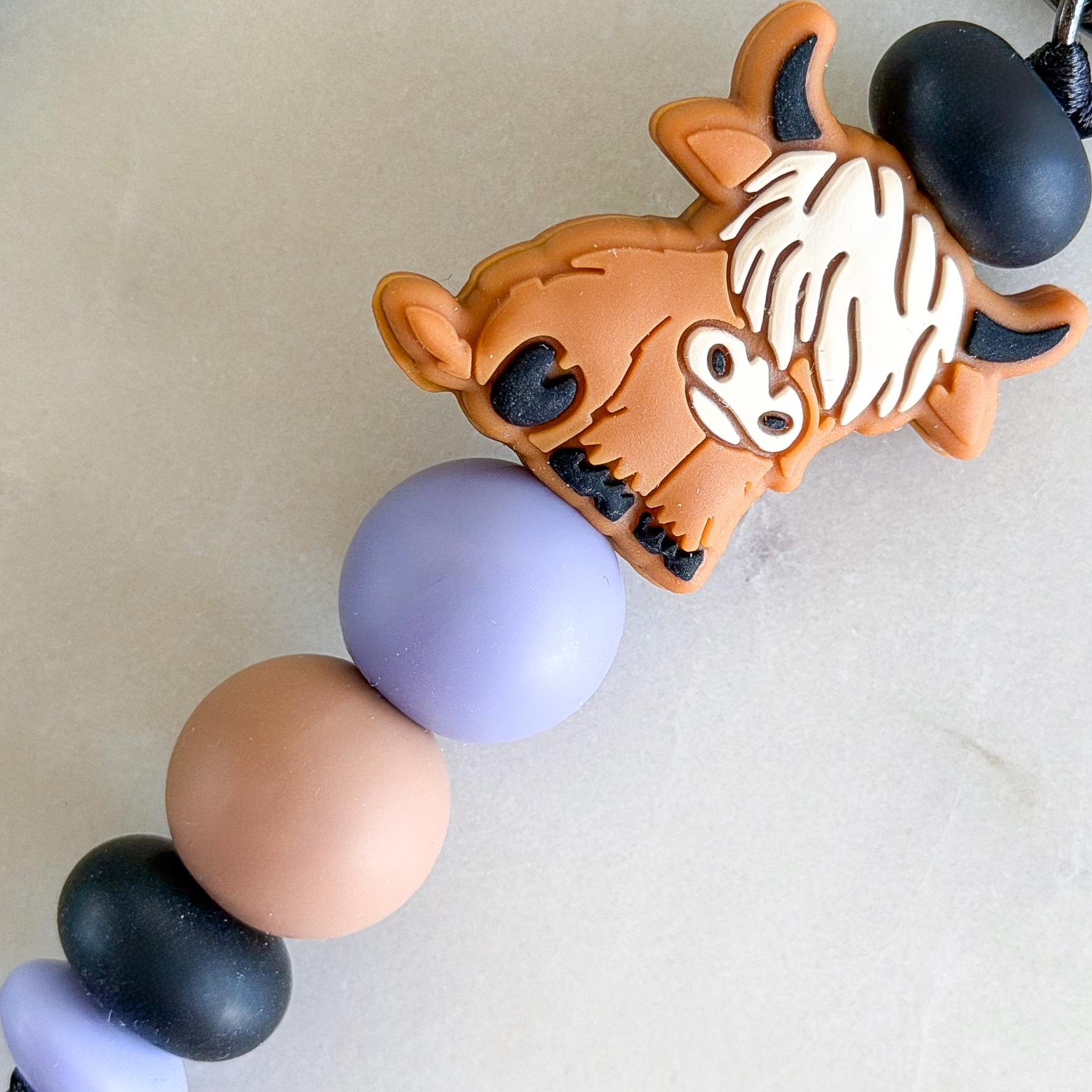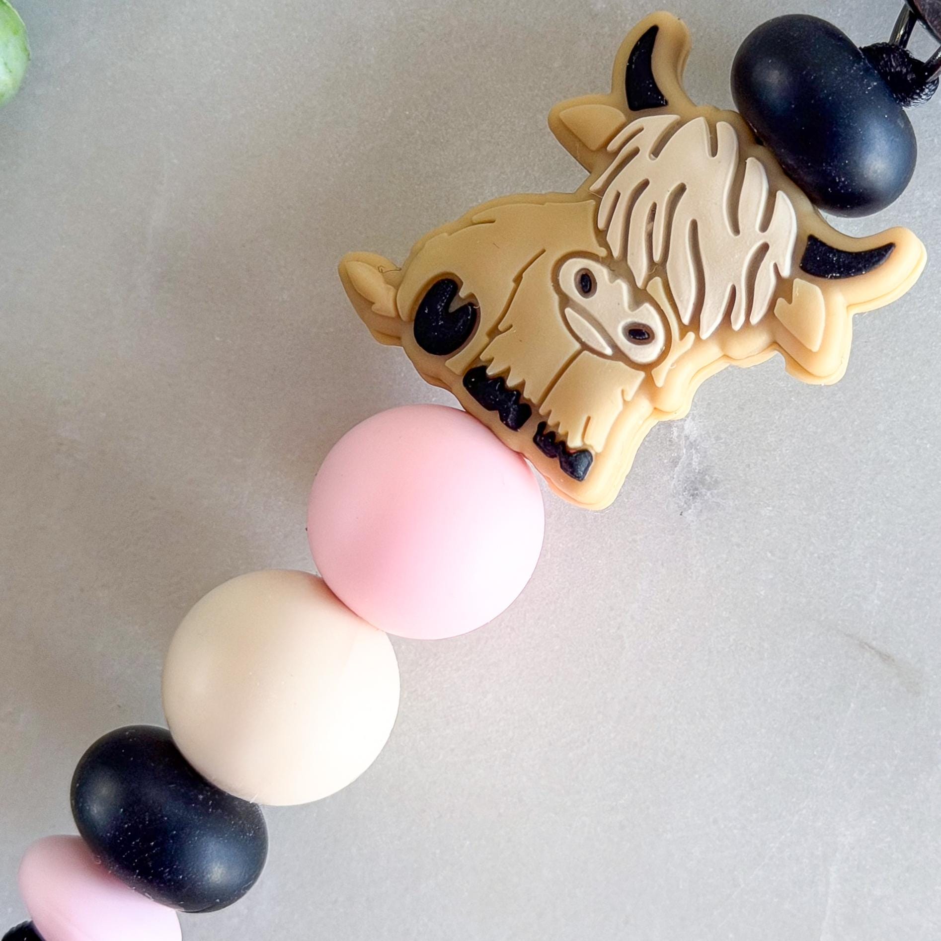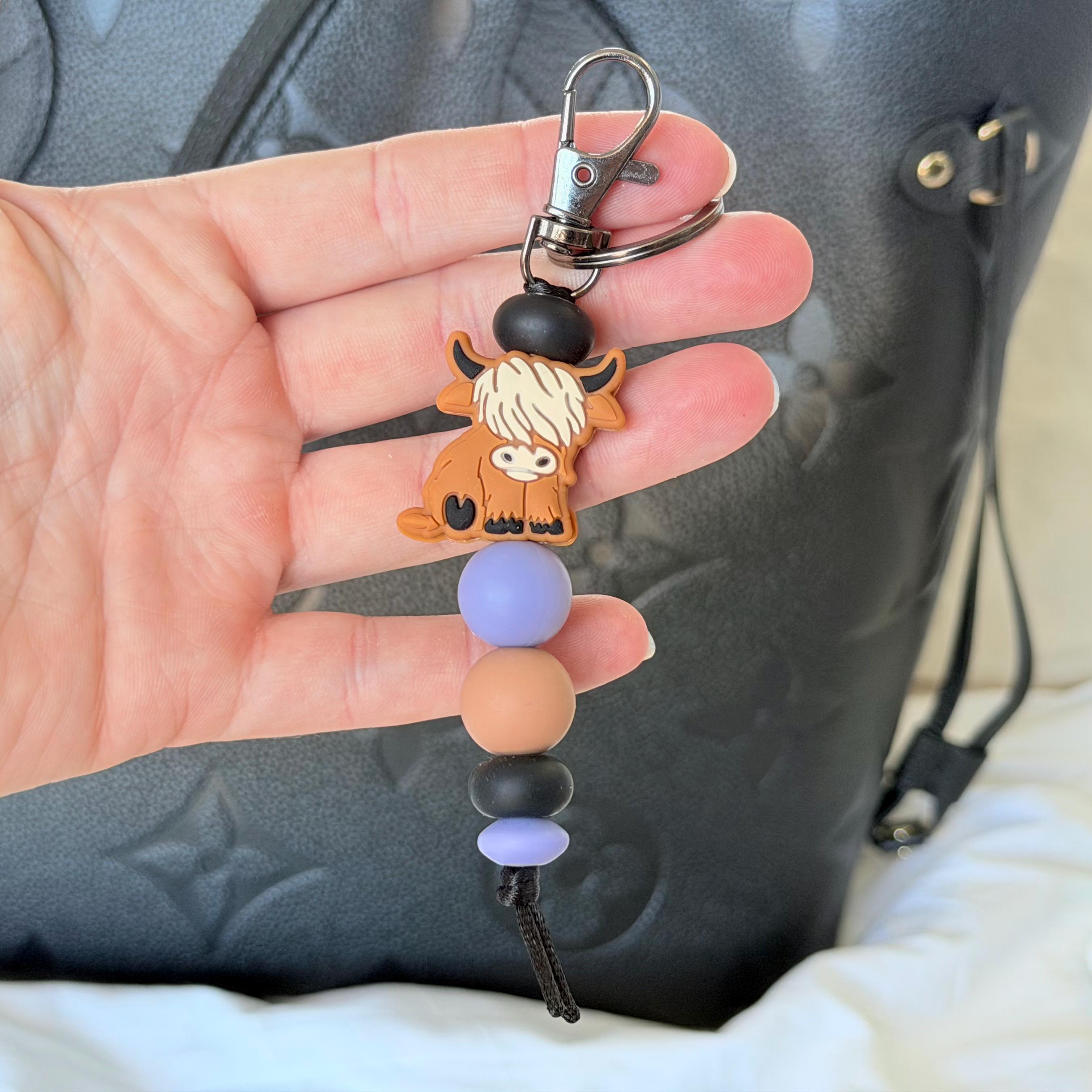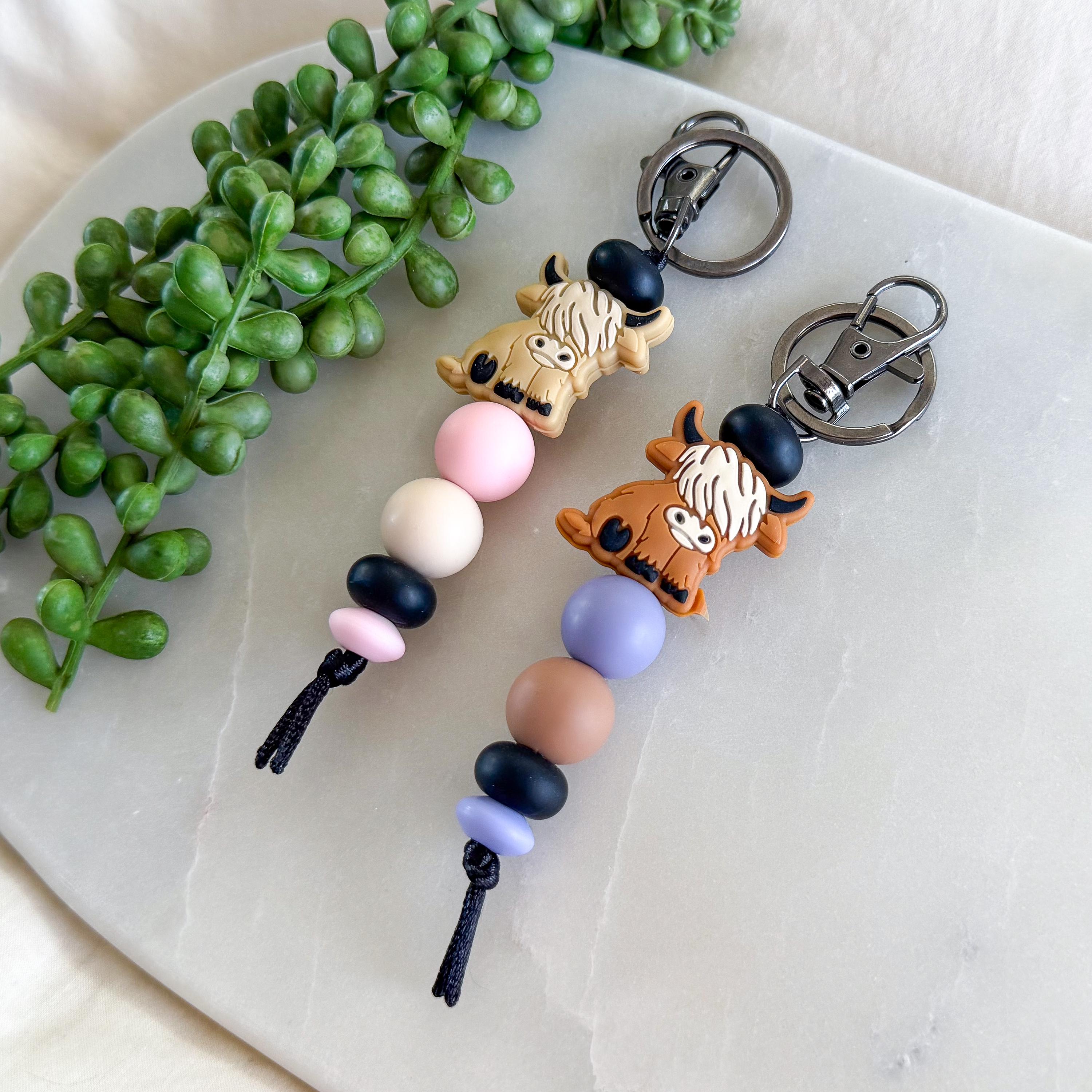 A cosy cow silicone bead keyring in warm, earthy tones - the perfect mix of neutral and playful.