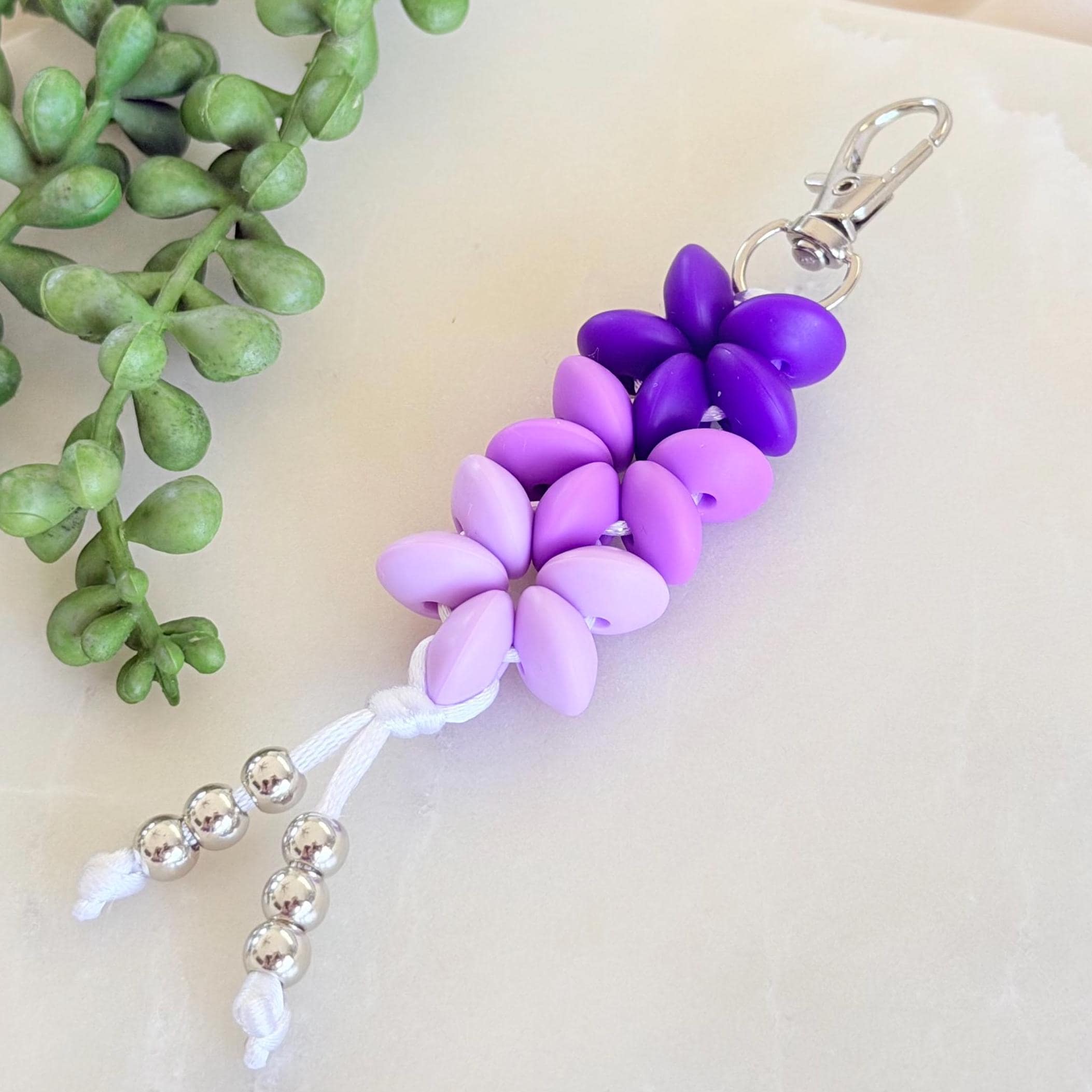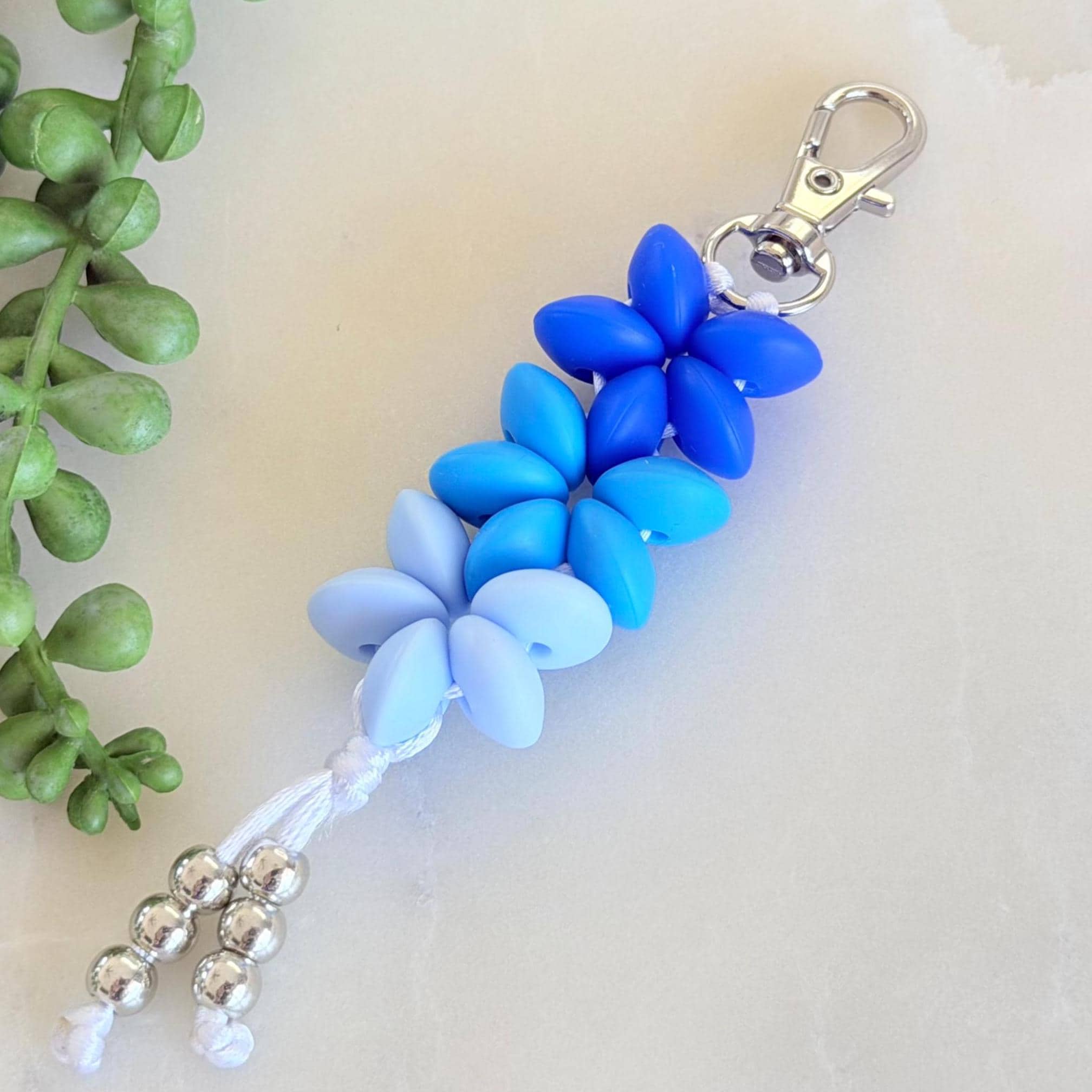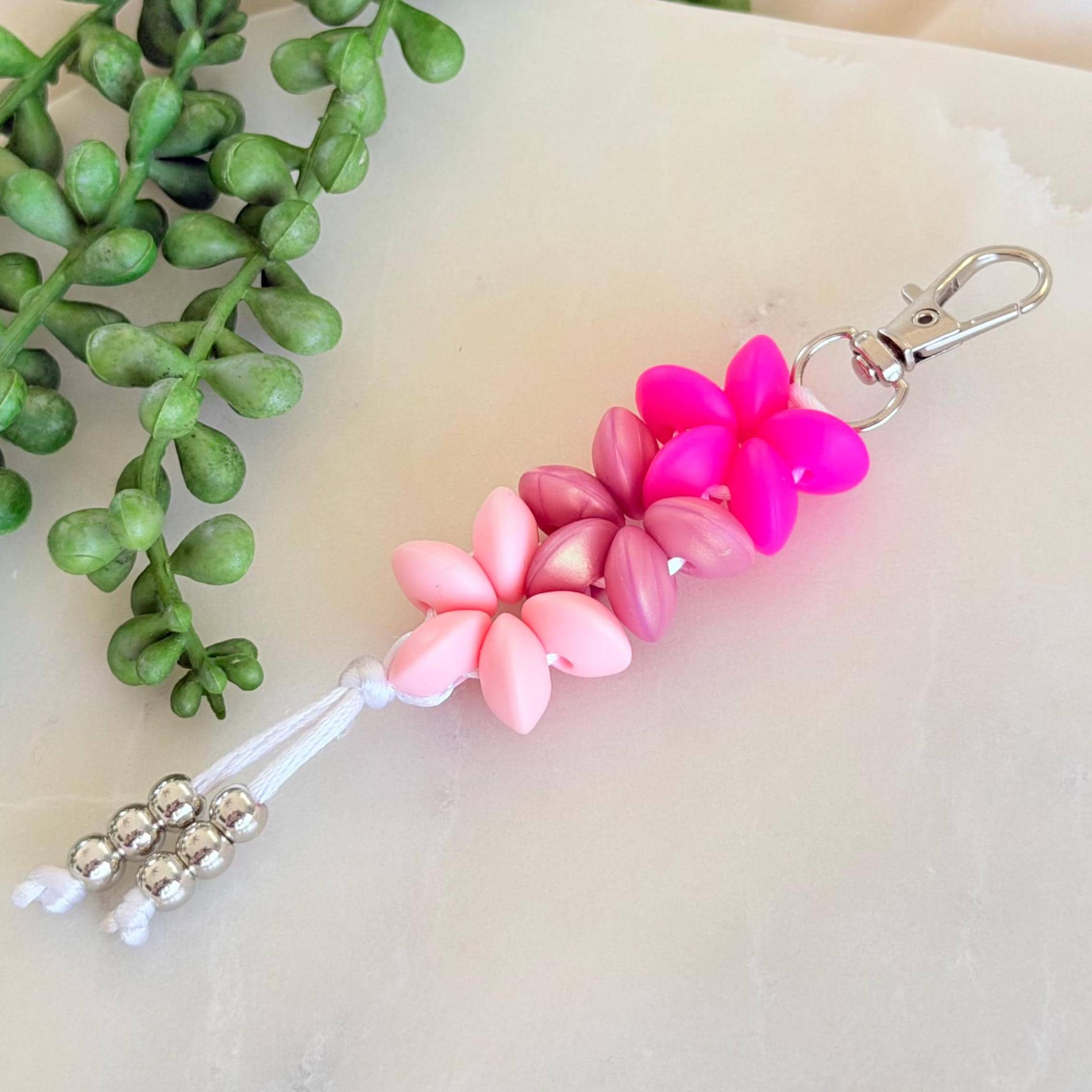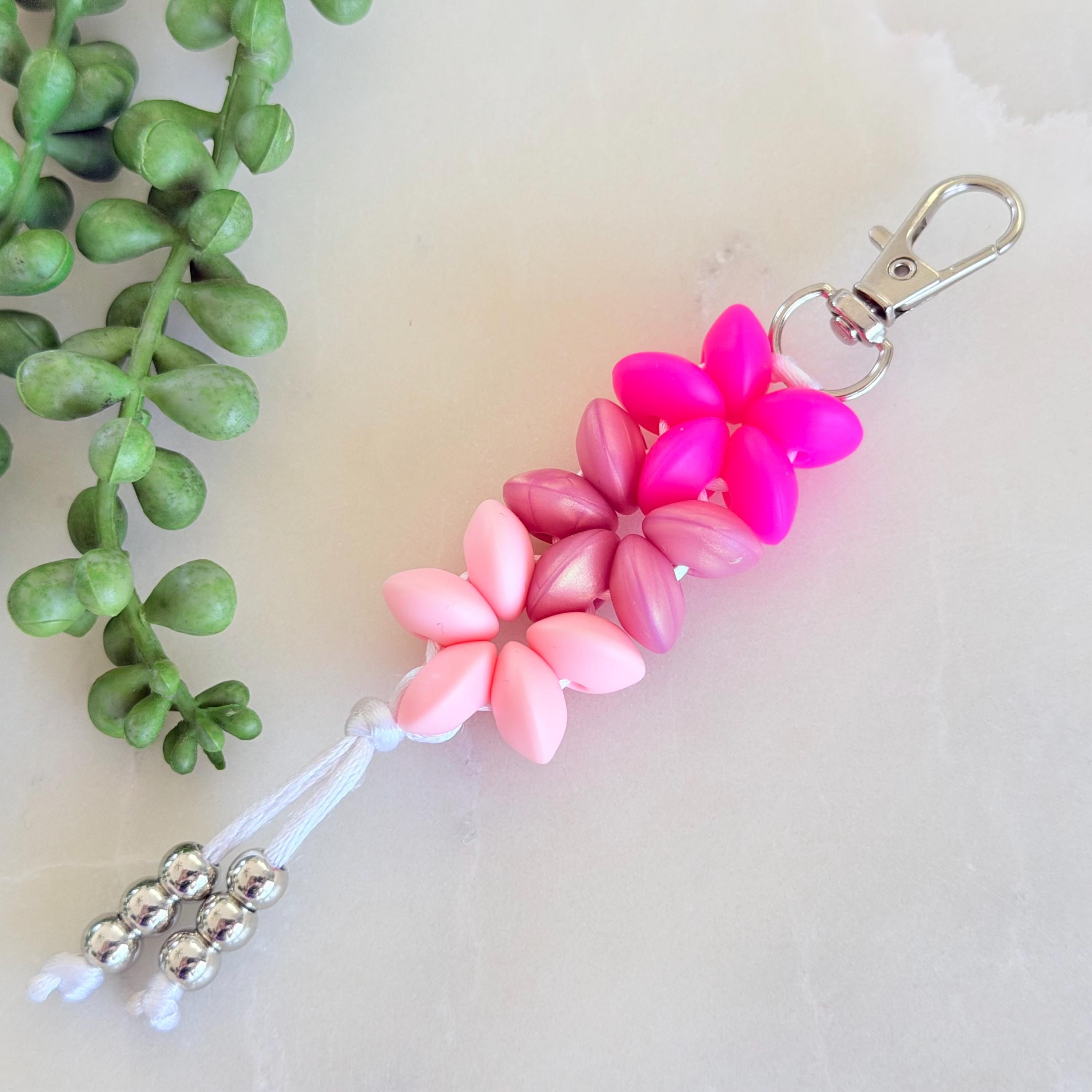 This silicone flower keyring charm is a cute, colourful accessory designed to add a playful handmade touch to your keys, bag, or zipper. Featuring a soft ombre flower design and silver bead tassel detail, it’s a bright little piece that feels fun, giftable, and easy to love.