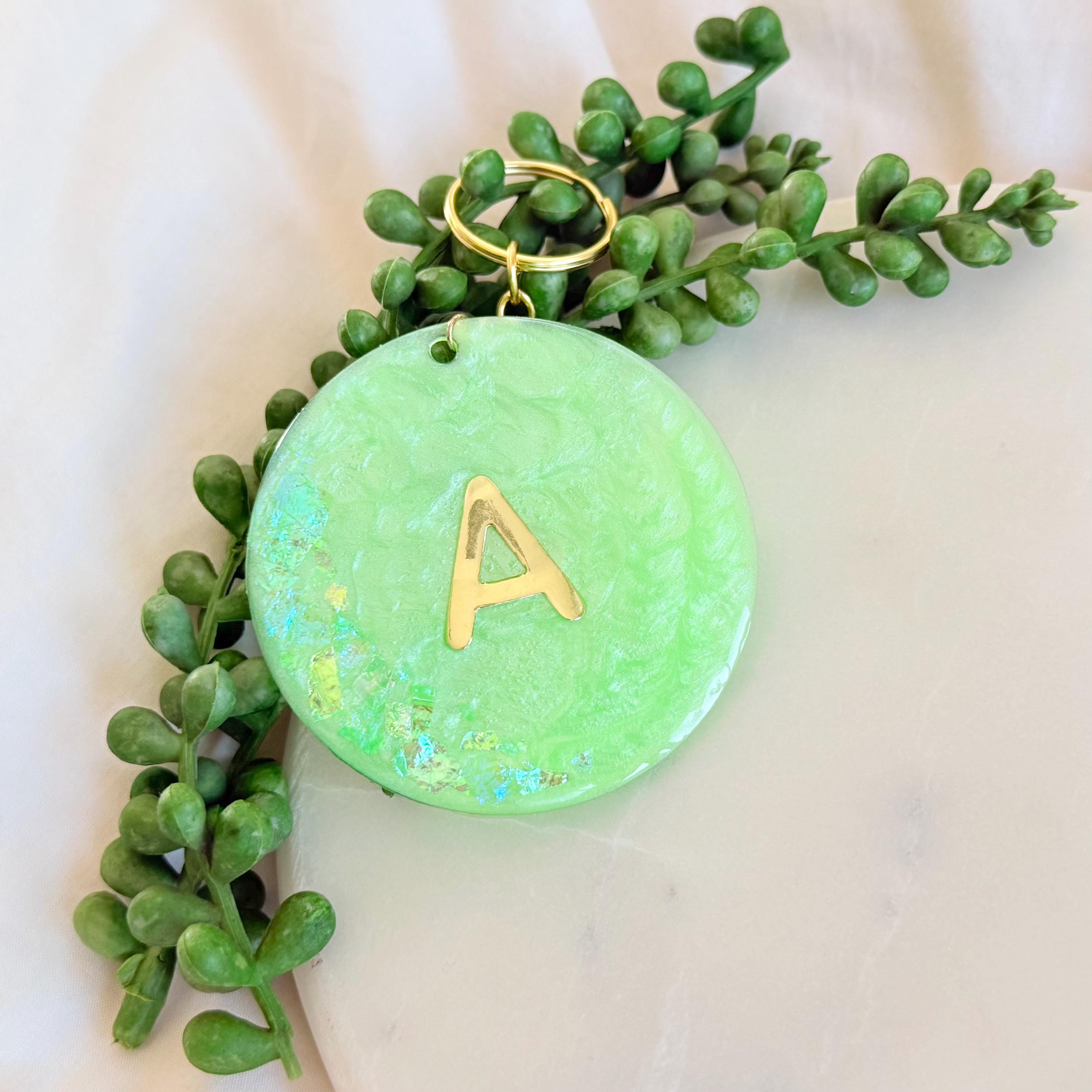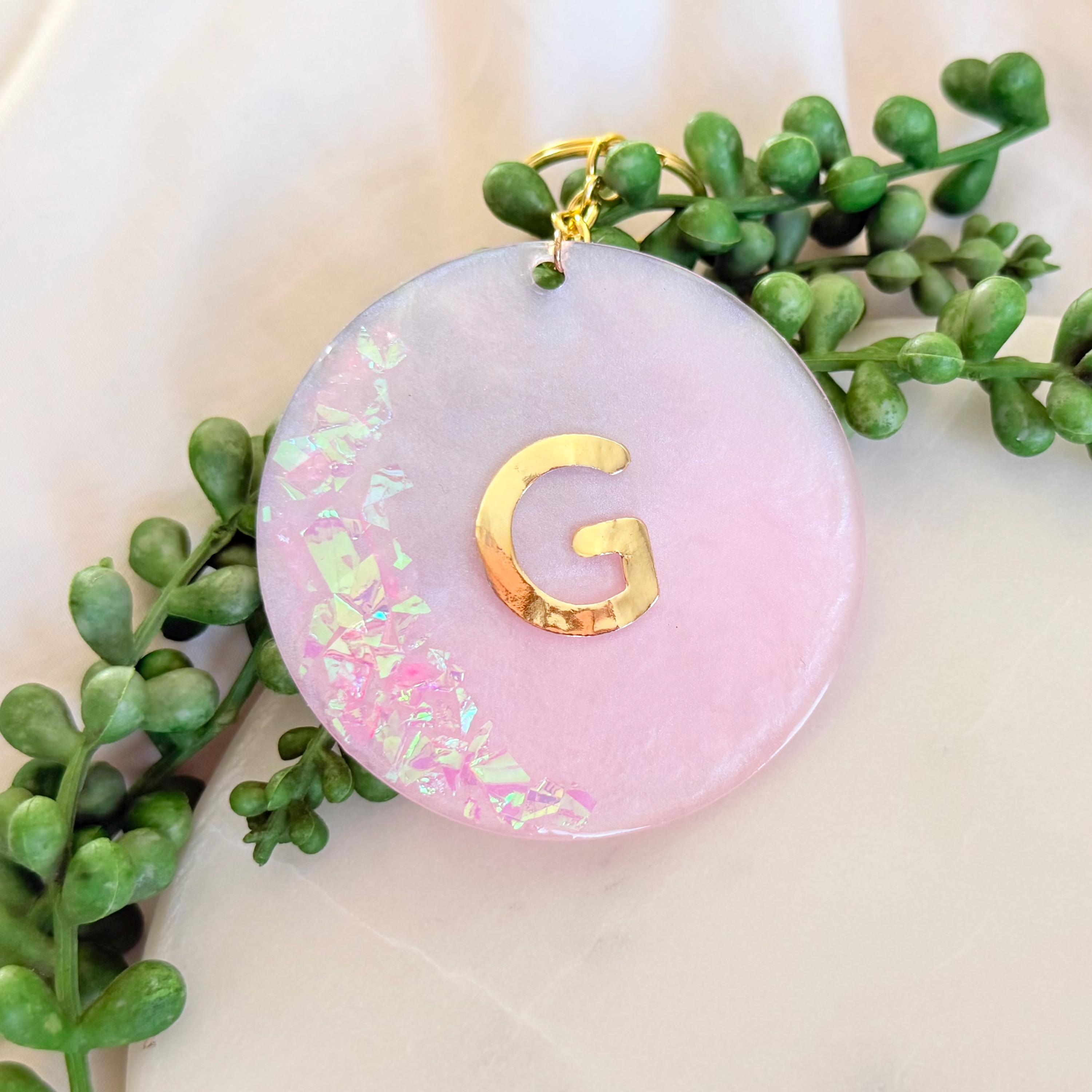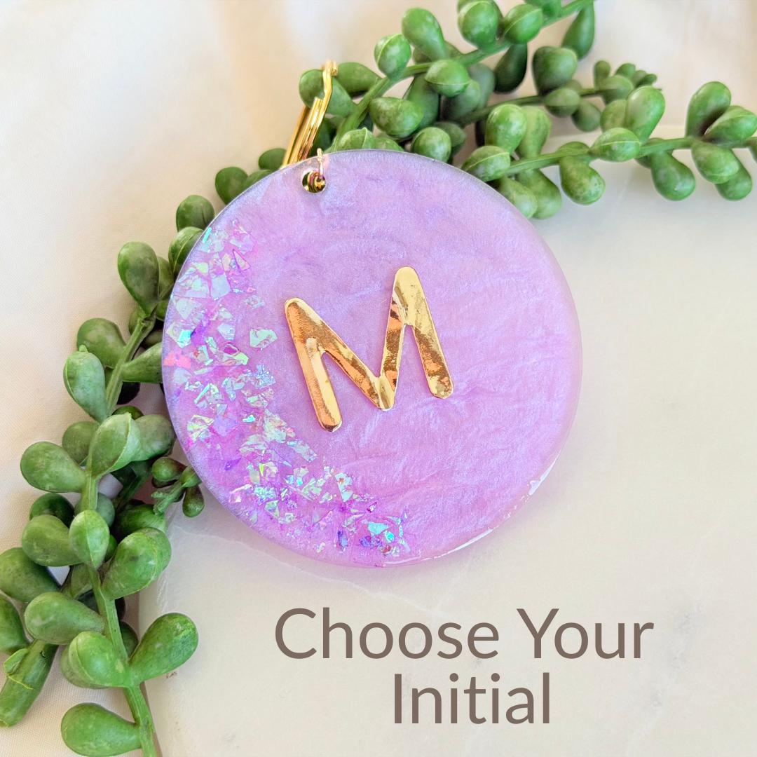 This personalised resin initial keyring is a soft, glossy statement piece designed to add a pretty, custom touch to your everyday essentials. Featuring a gold letter and dreamy iridescent detailing, it’s both practical and beautifully unique.