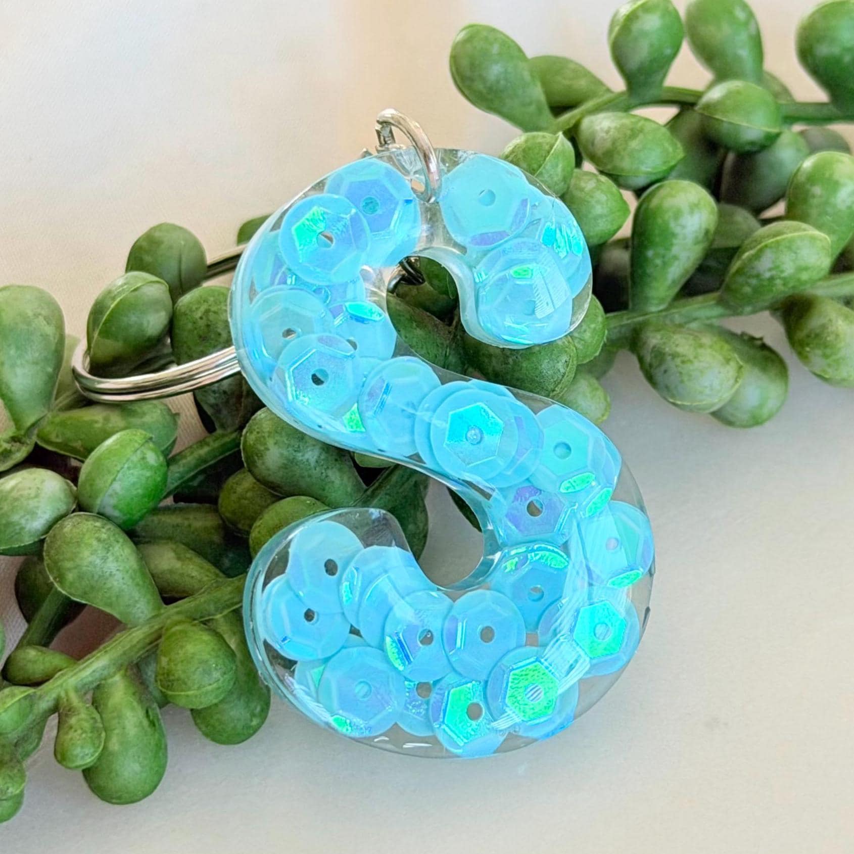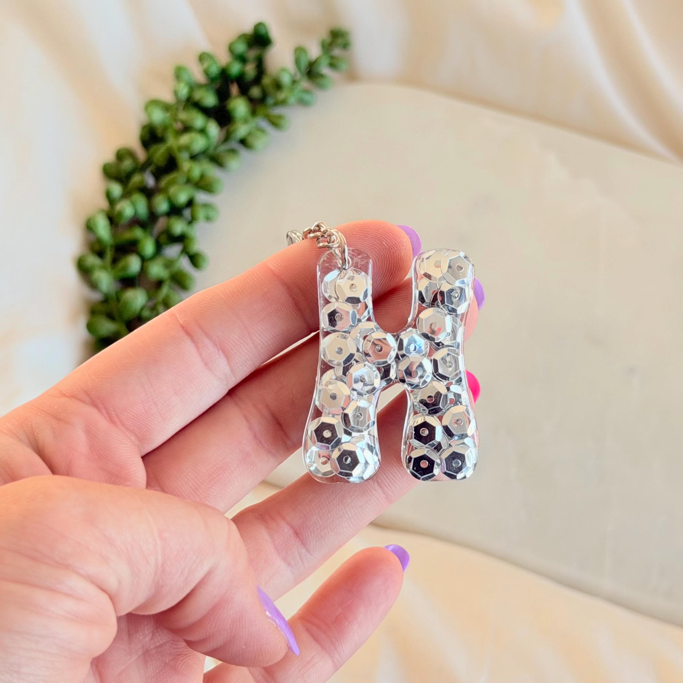Each letter is thoughtfully created with delicate sequins placed in clear resin, catching the light in the prettiest way. It’s one of those small details that makes your keys, bag, or lanyard feel a little more you.