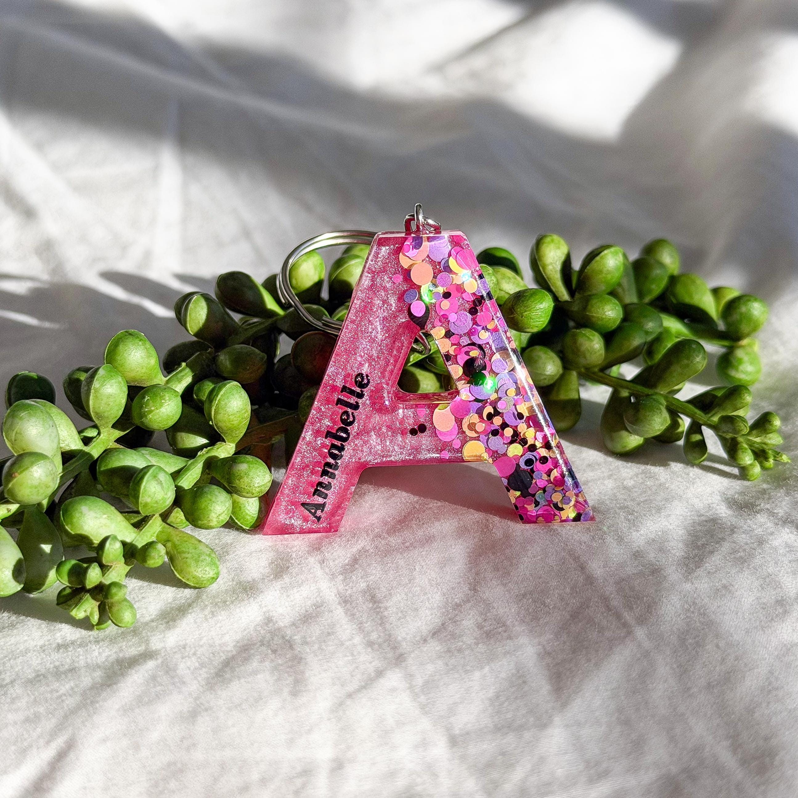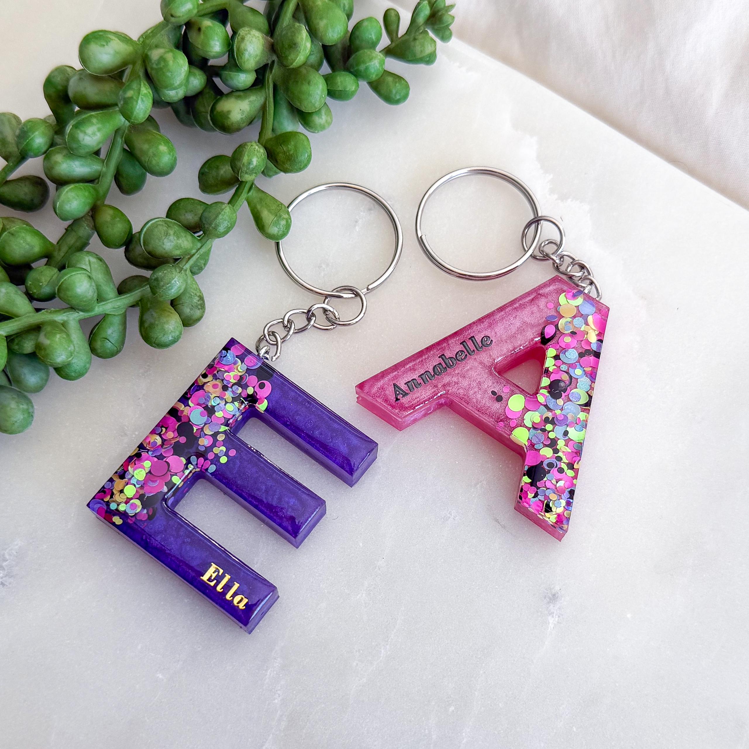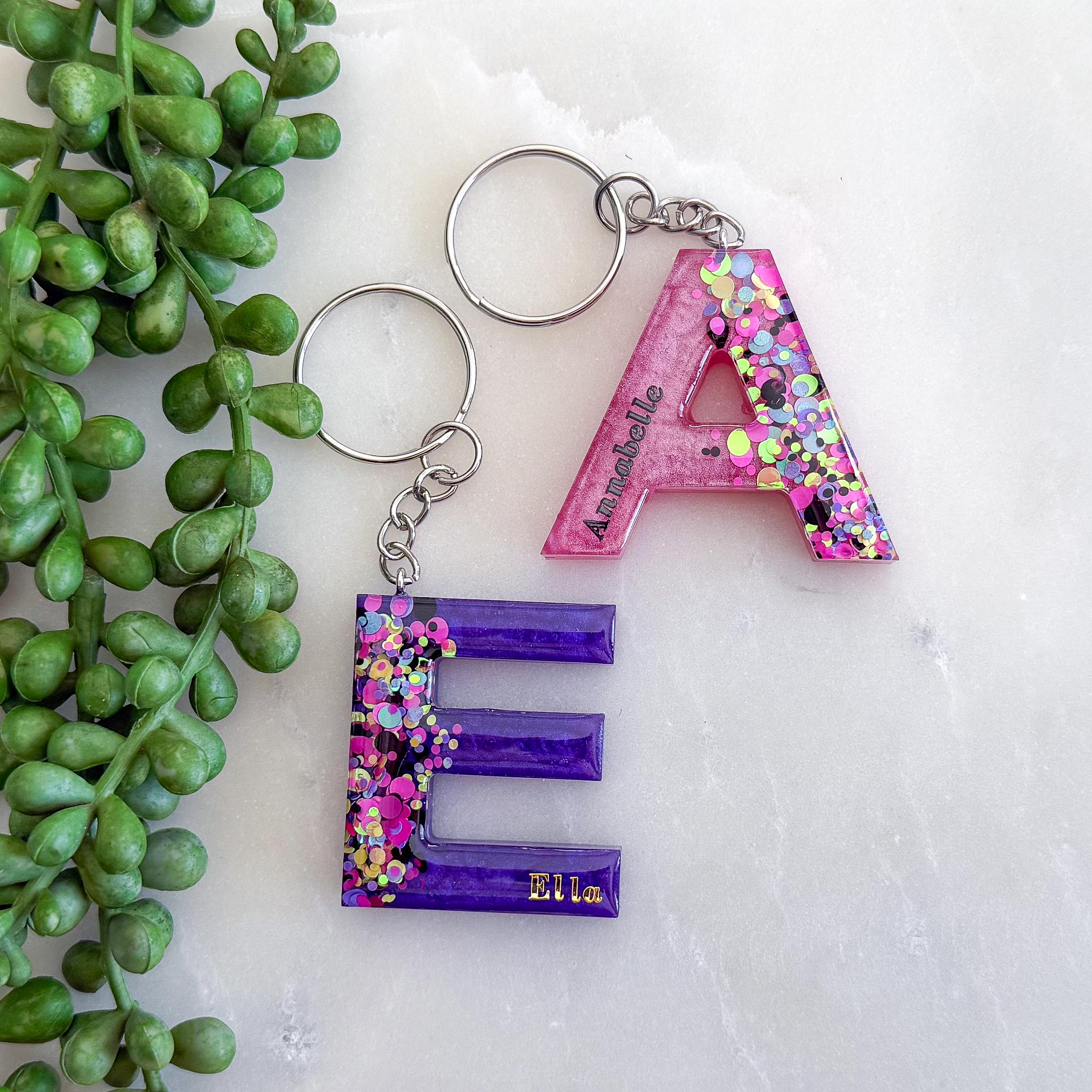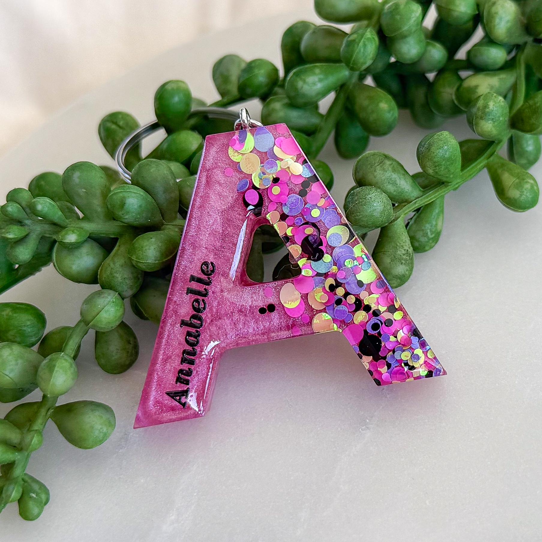 Add a bold, sparkly touch to your everyday essentials with this personalised resin initial keyring.