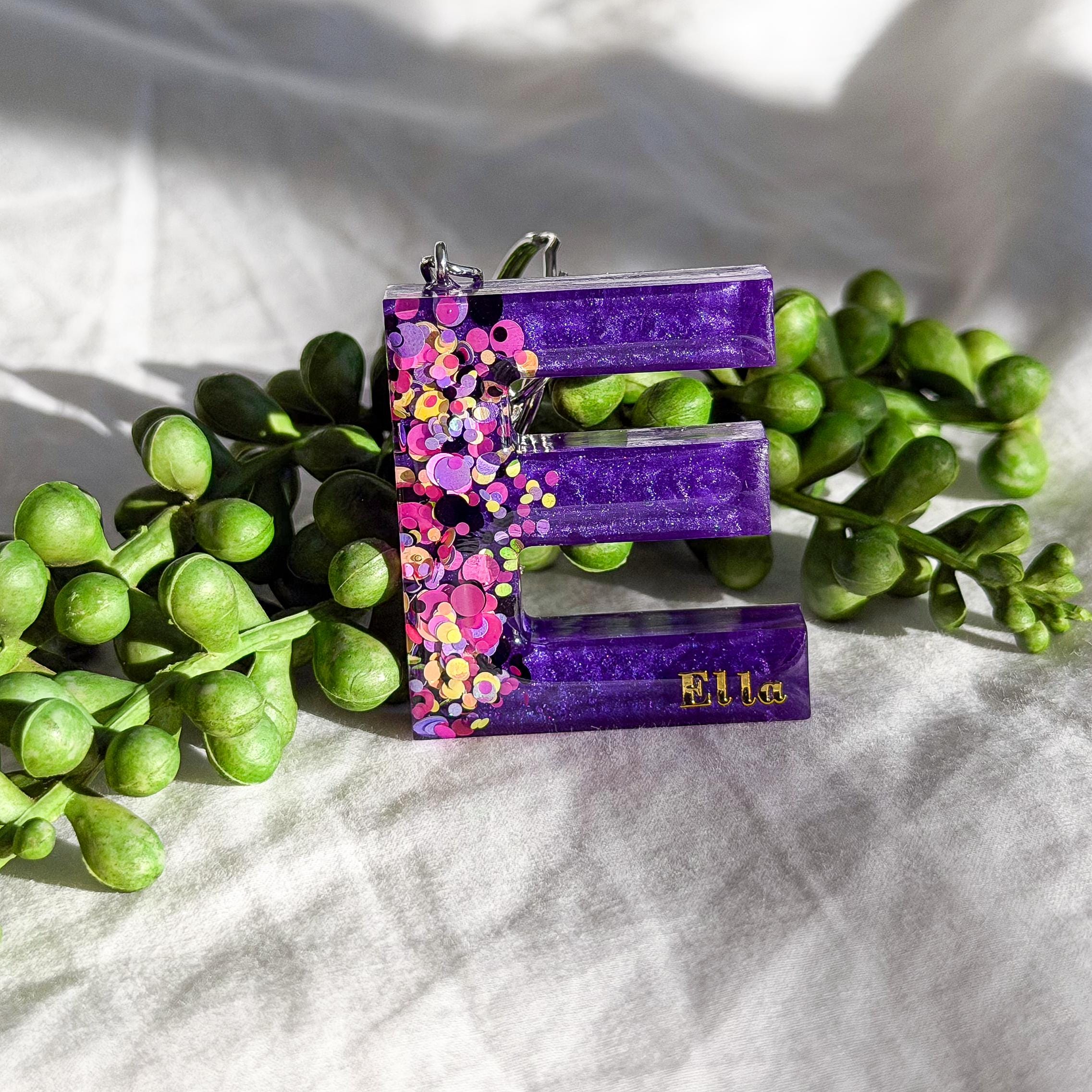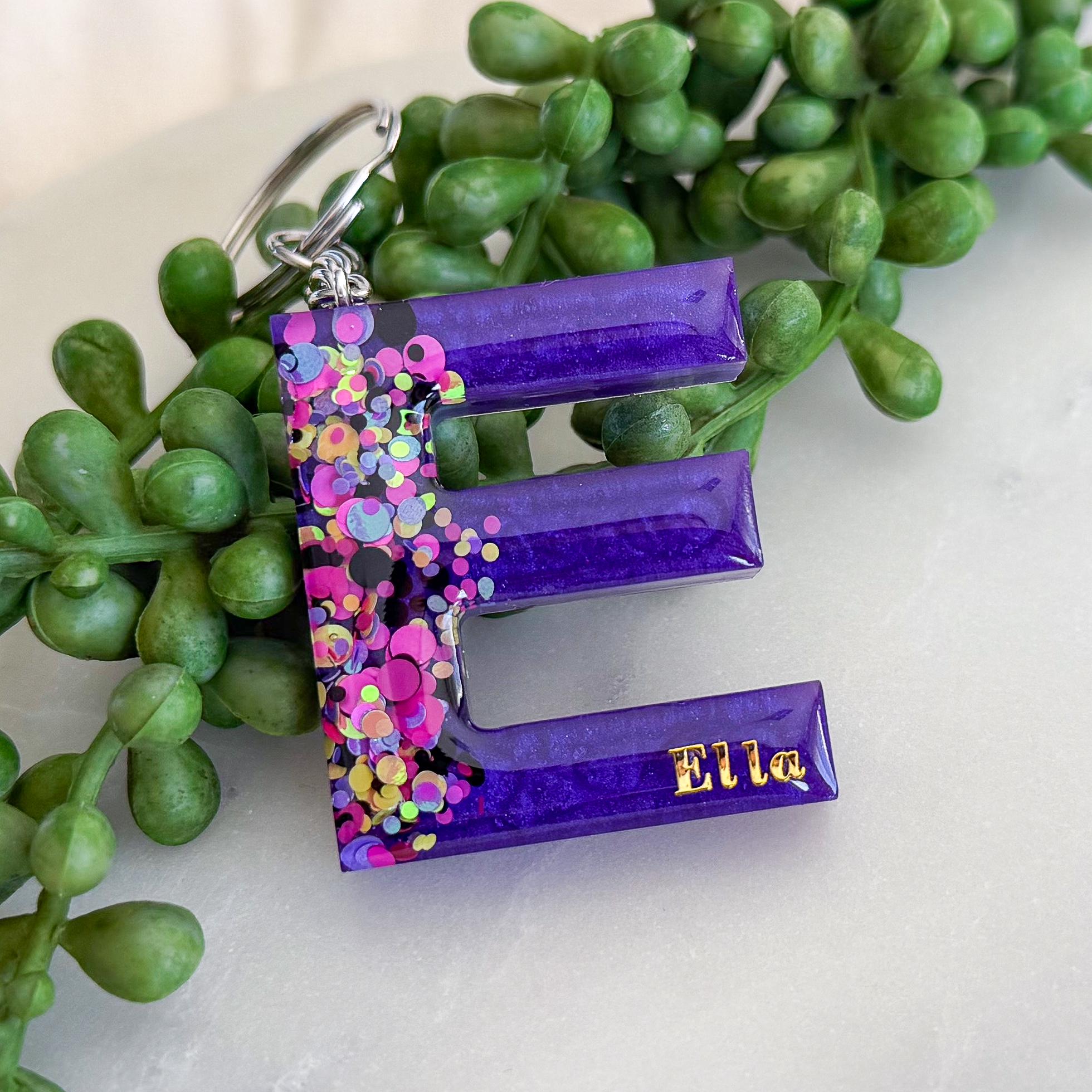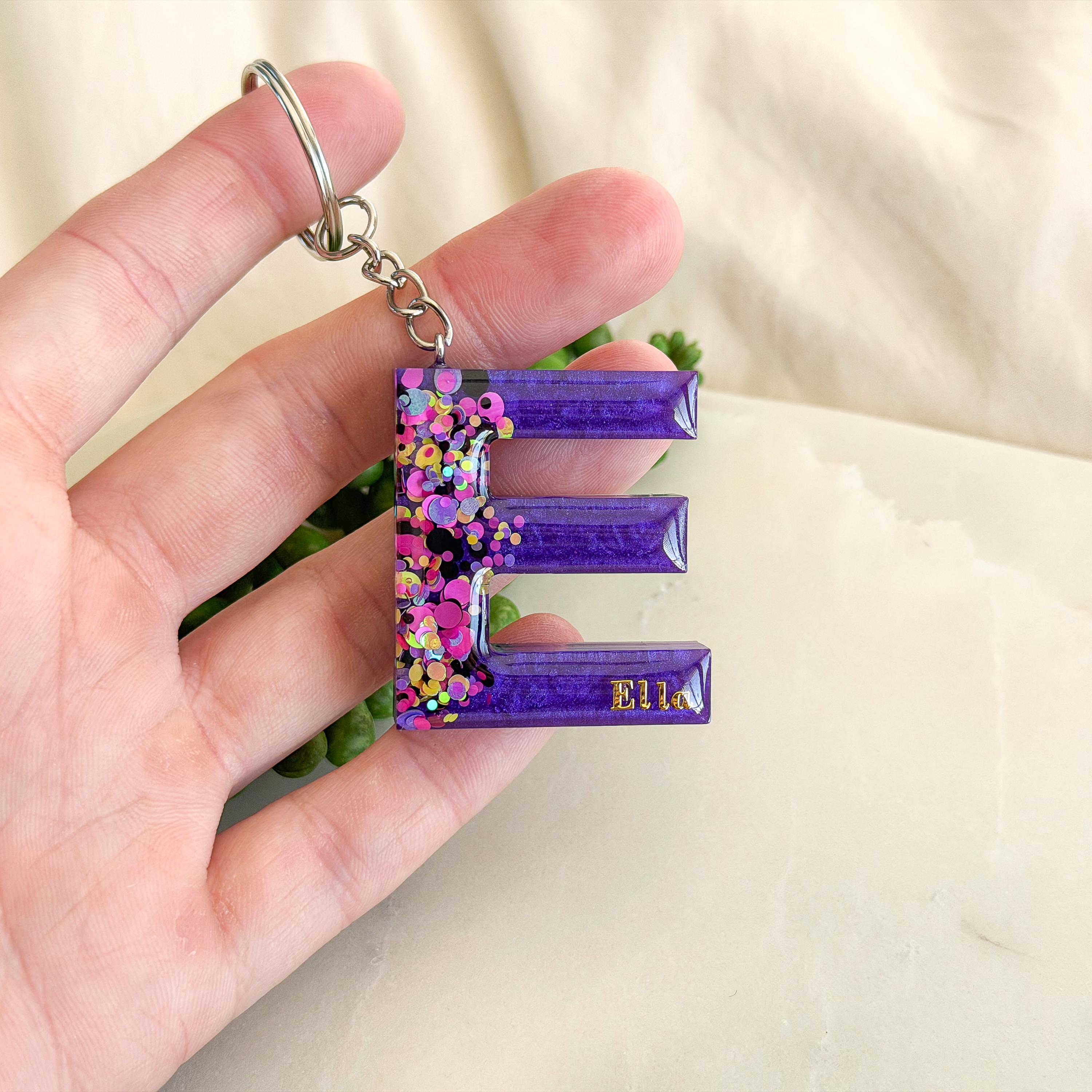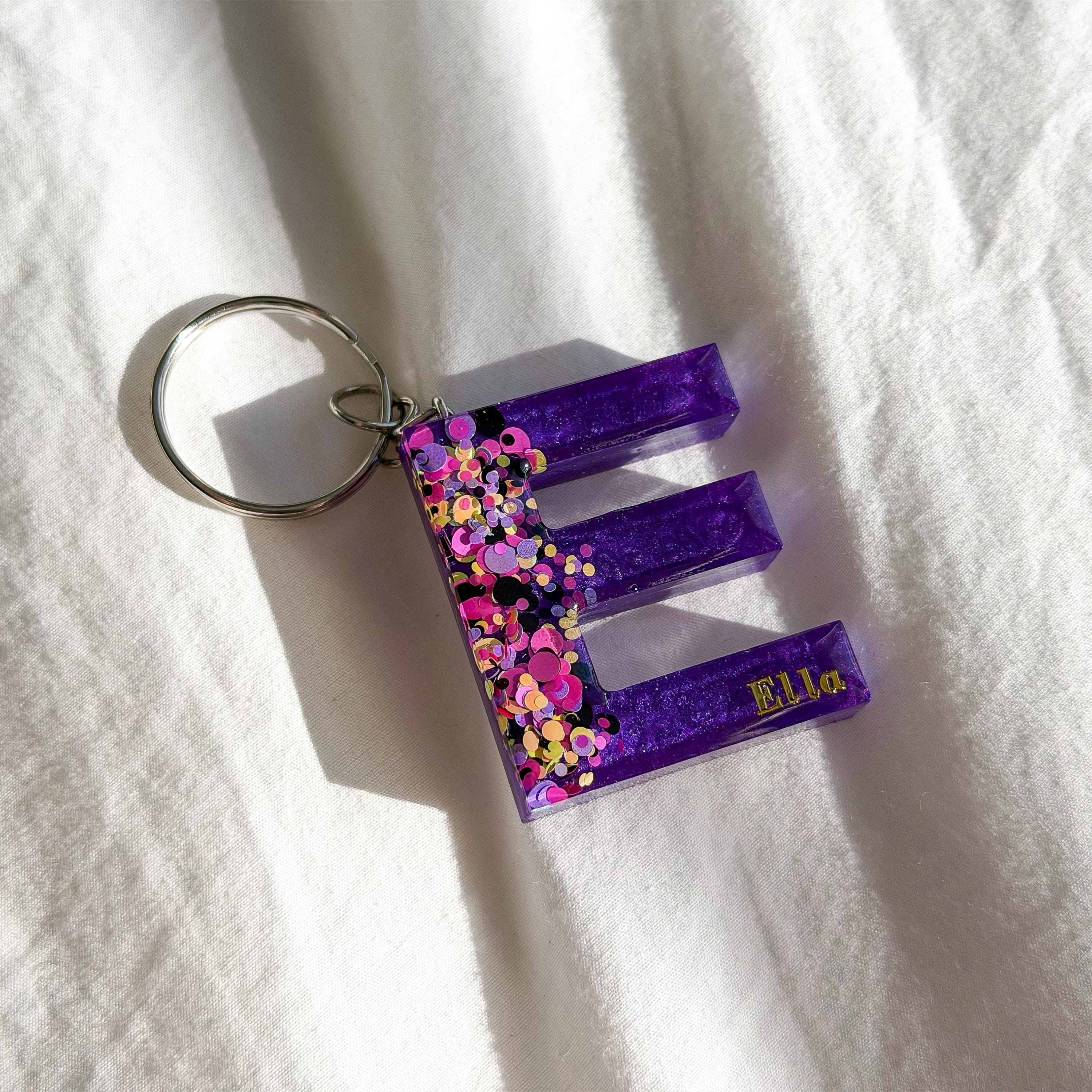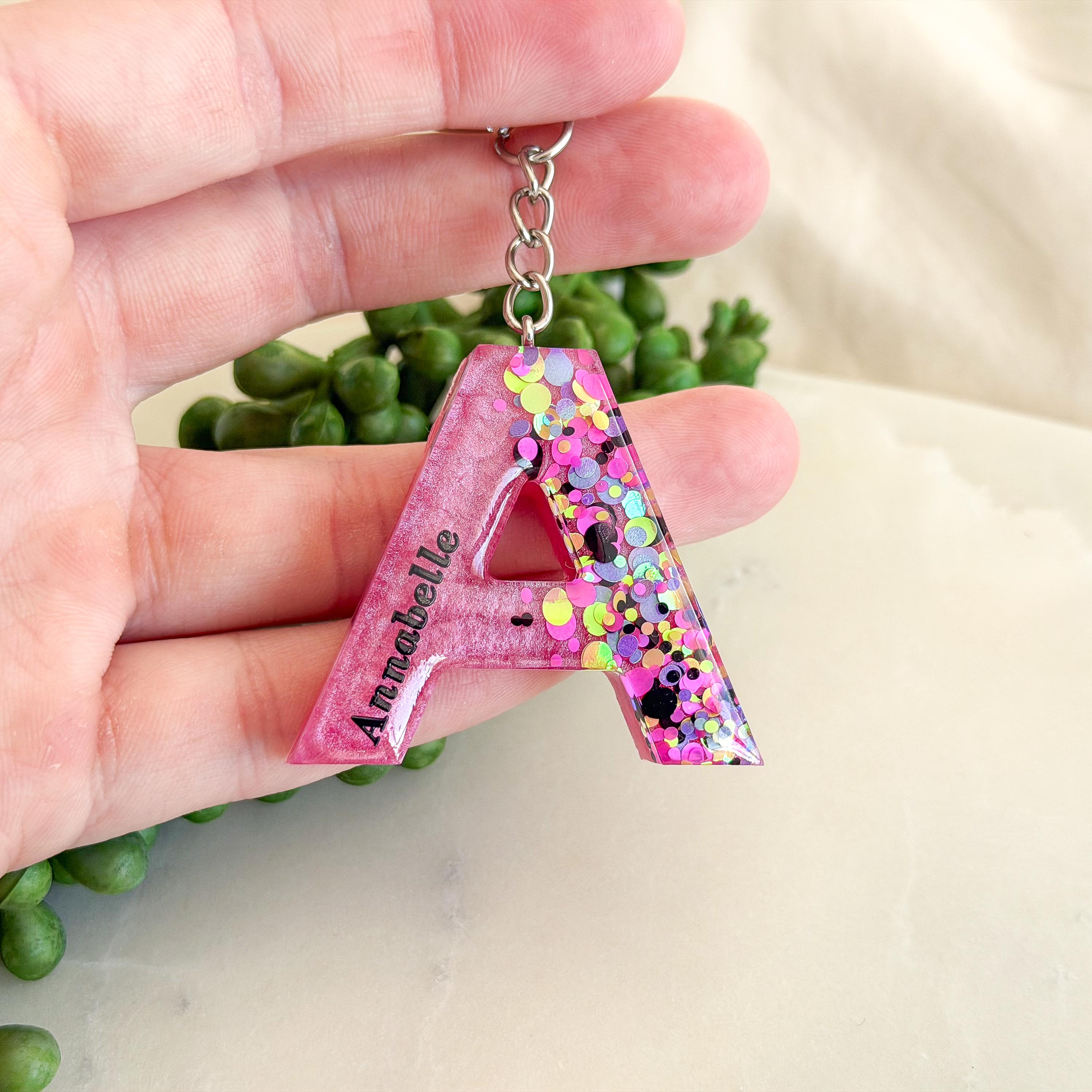 Add a bold, sparkly touch to your everyday essentials with this personalised resin initial keyring.