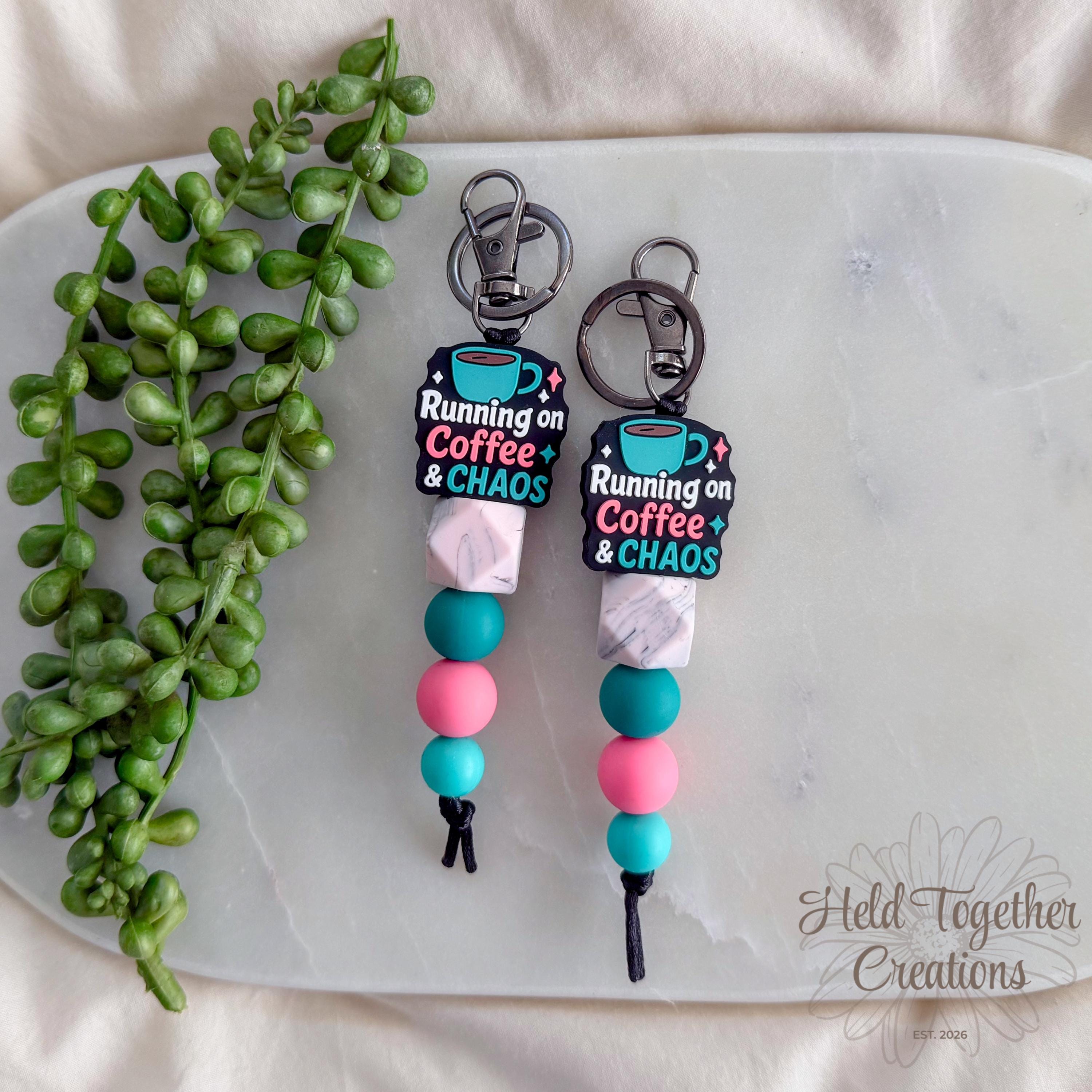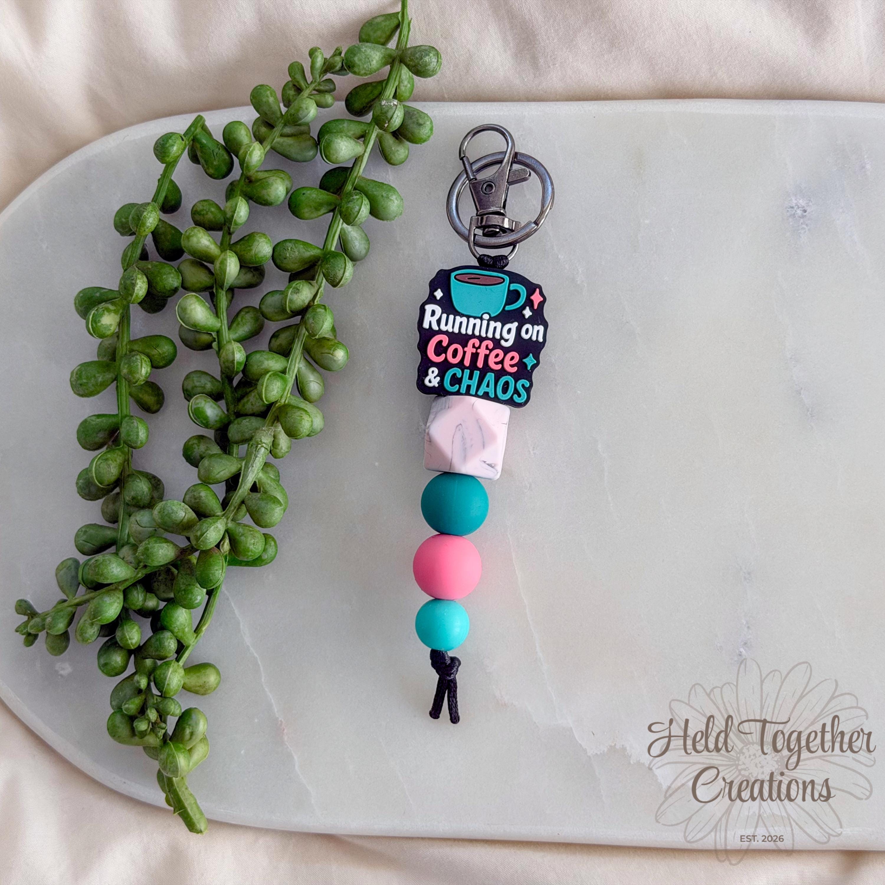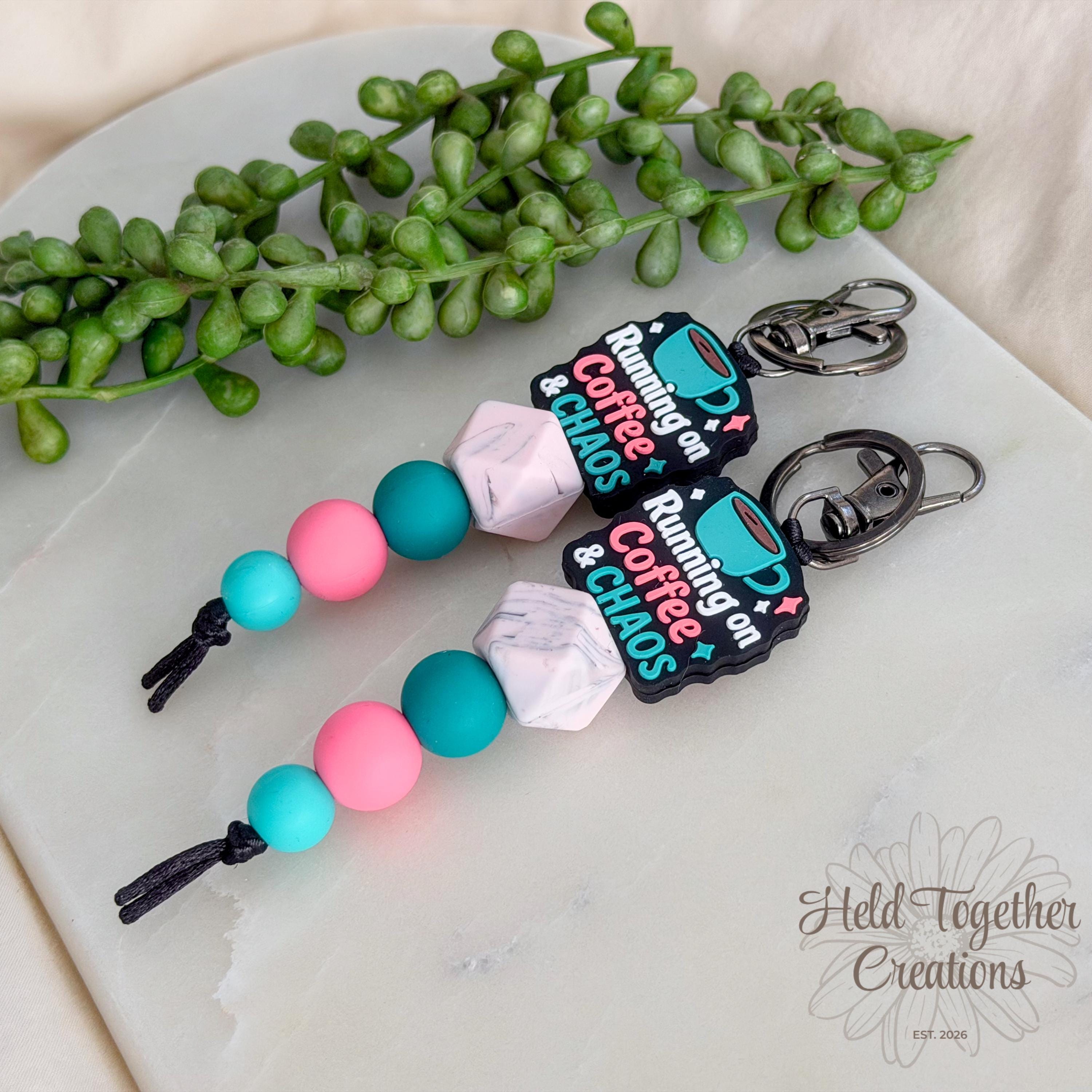 Running on coffee & chaos? Same. This handmade silicone bead keyring is the perfect everyday accessory for busy mums who deserve a little personality on their keys.
