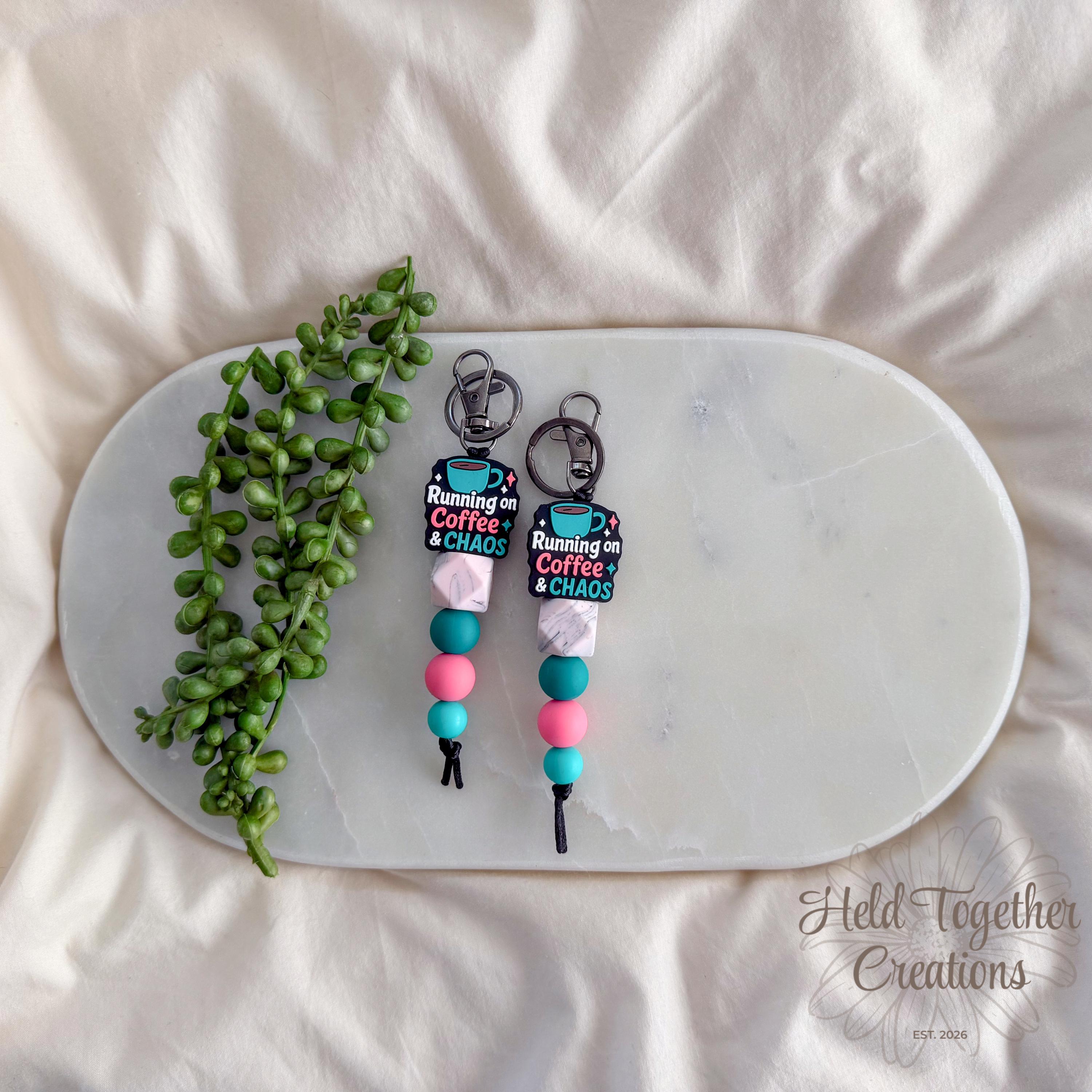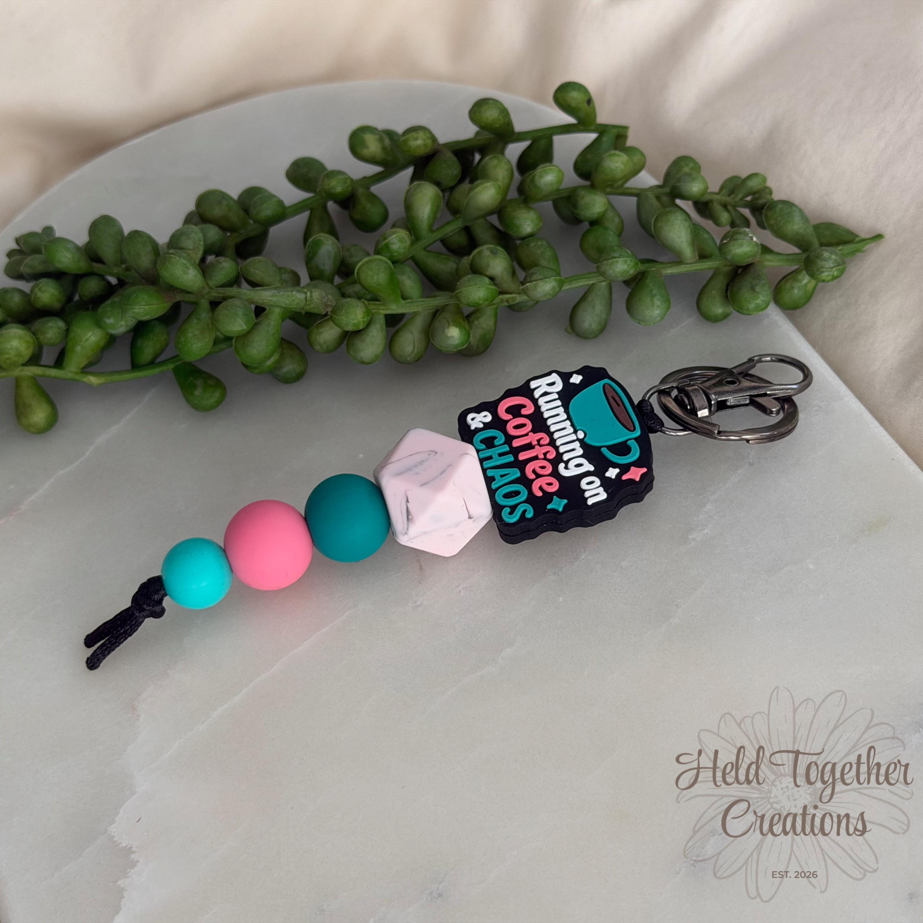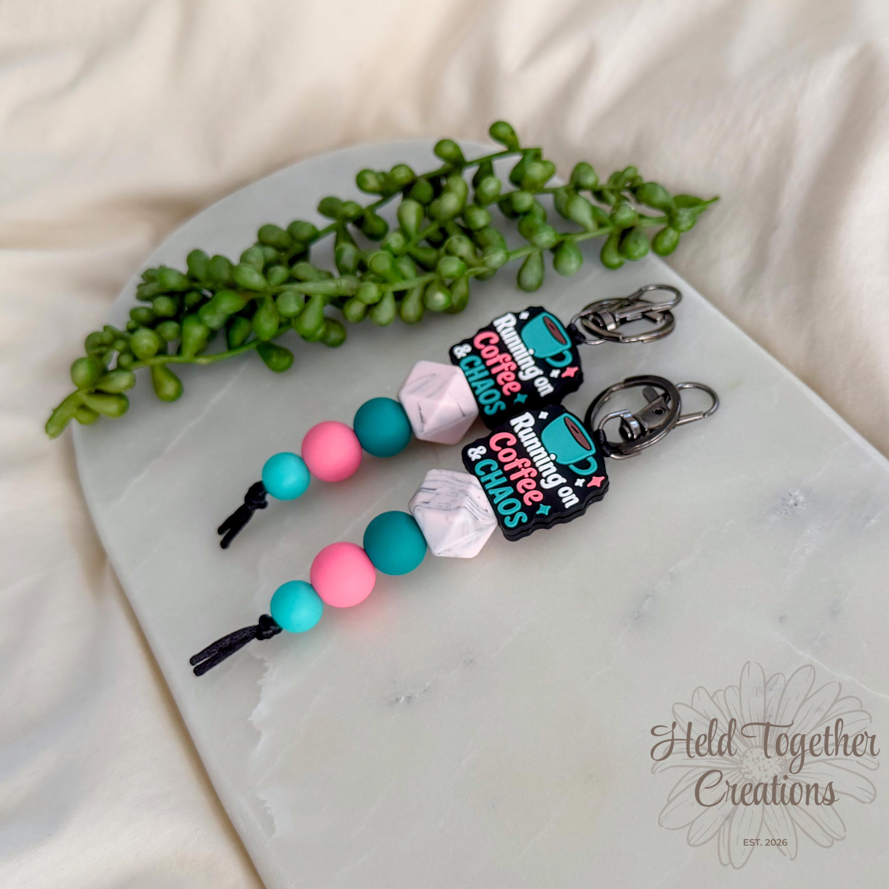 Running on coffee & chaos? Same. This handmade silicone bead keyring is the perfect everyday accessory for busy mums who deserve a little personality on their keys.